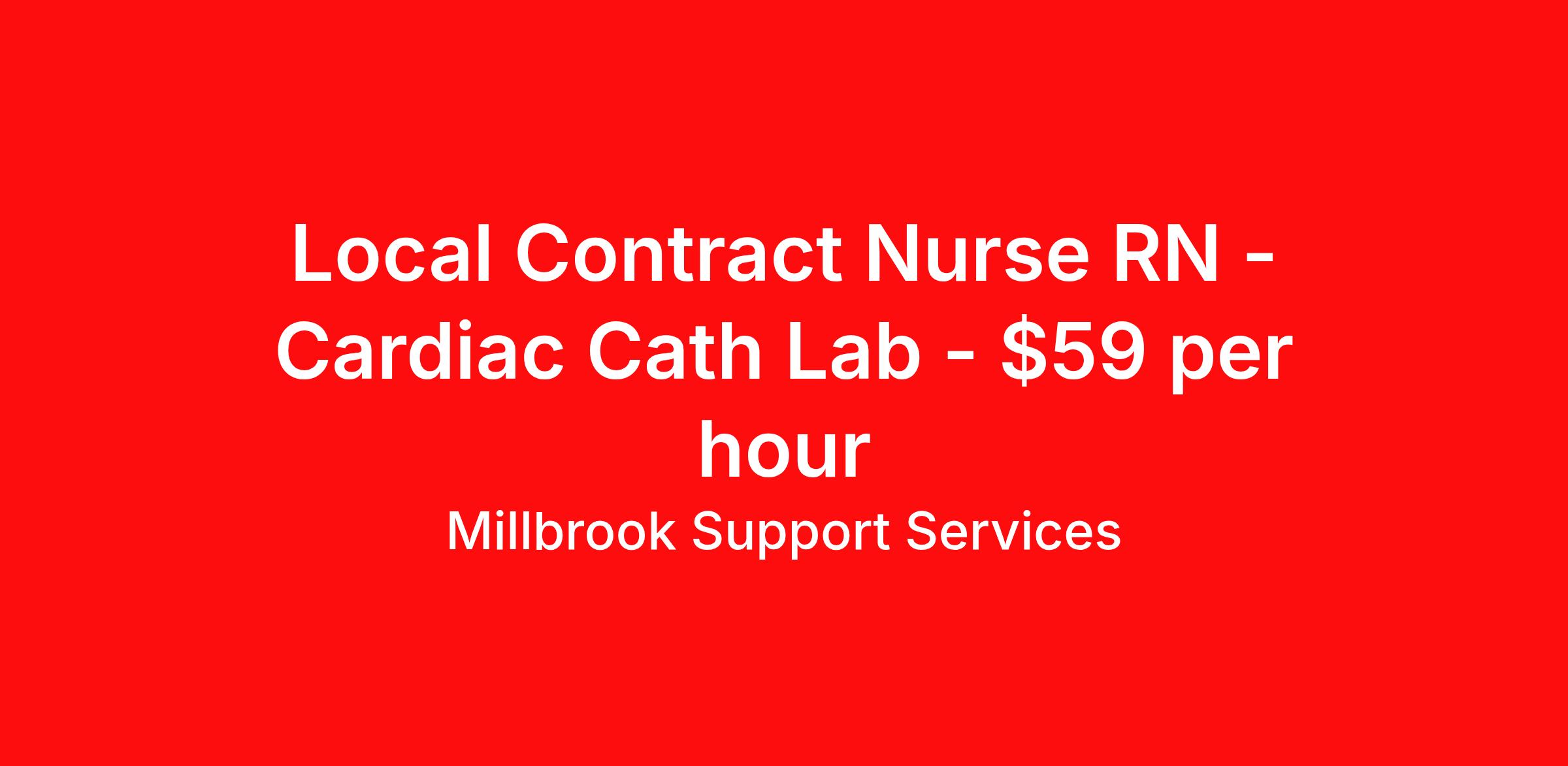 Millbrook Support Services is seeking a local contract nurse RN Cardiac Cath Lab for a local contract nursing job in West Palm Beach, Florida. Job Description & Requirements Specialty: Cardiac Cath Lab Discipline: RN Duration: 52 weeks 40 hours per week Shift: 8 hours, days Employment Type: Local Contract LOCAL CANIDATES ONLY Millbrook specializes in placing healthcare providers of varying specialties with clients throughout the United States. Want to work for a company that actually invests in your future? Along with offering providers attractive assignments with our world class customer base, Millbrook focuses on value-added training programs to help keep providers up to date in the latest advancements in medicine and technologies. We offer local and travel assignments from 13 weeks to one year. Our qualified staffing specialists are standing by and ready to help match your medical expertise with a thrilling new opportunity! We are looking for a dedicated Cath Lab RN in West Palm Beach, FL with excellent communication skills, critical thinking skills, and team player attitude. This provider will be responsible for caring for patients, communicating with other medical team members and maintaining accurate medical records. Job Requirements: 2 Years experience required BLS / ACLS required Interventional Radiology experience required With Millbrook Support Services you will receive: An experienced recruiting team to help identify your dream job Comprehensive credentialing assistance throughout your contract Health Benefits Excellent compensation plans Weekly Direct Deposit Referral Bonuses so you can work with your friends! About Millbrook Support Services Millbrook specializes in placing healthcare providers of varying specialties with clients throughout the United States. Want to work for a company that actually invests in your future? Along with offering providers attractive assignments with our world class customer base, Millbrook focuses on value-added training programs to help keep providers up to date in the latest advancements in medicine and technologies. We offer local and travel assignments from 13 weeks to one year. Our qualified staffing specialists are standing by and ready to help match your medical expertise with a thrilling new opportunity!