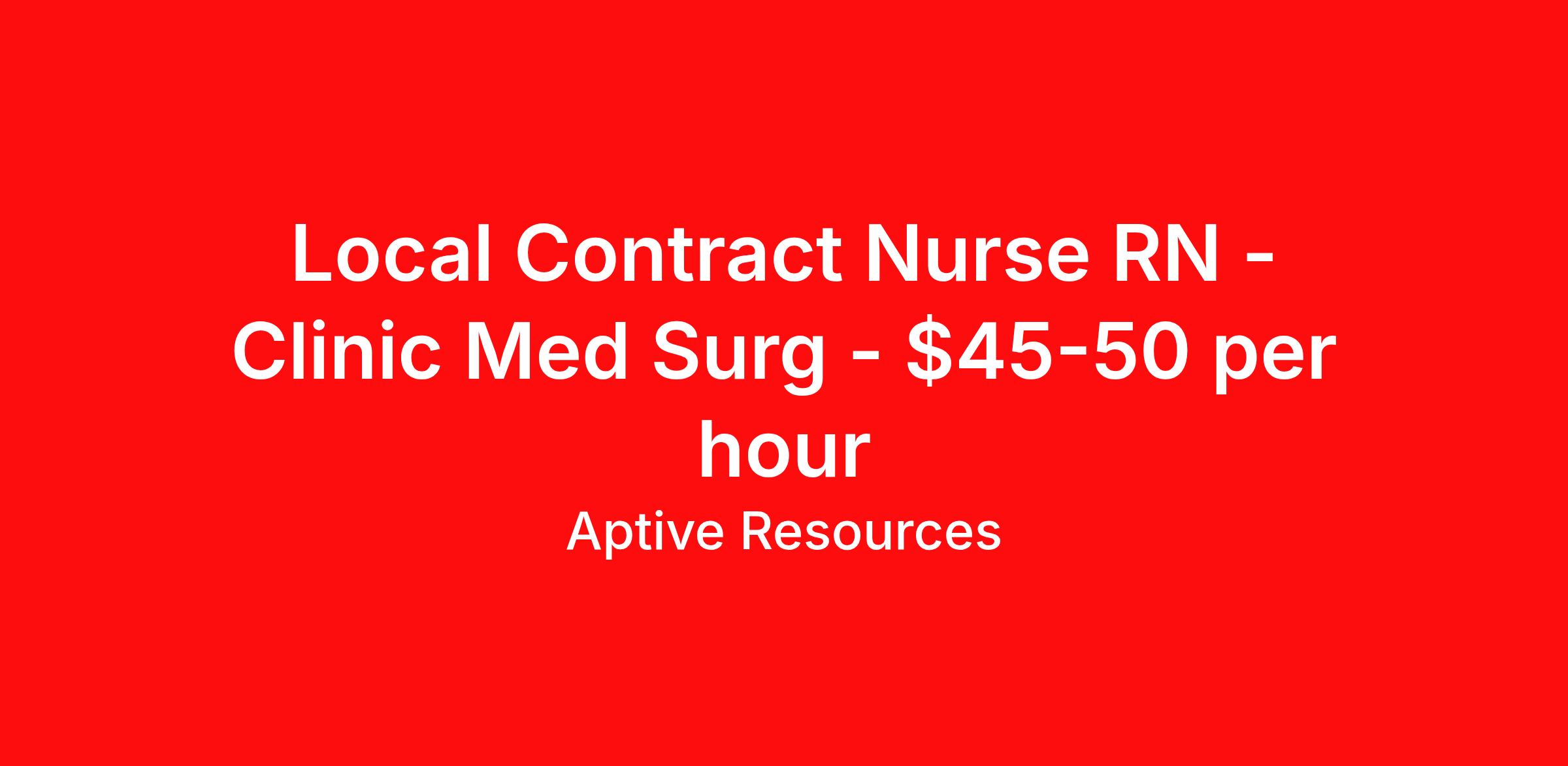 Aptive Resources is seeking a local contract nurse RN Clinic Med Surg for a local contract nursing job in Atlanta, Georgia. Job Description & Requirements Specialty: Med Surg Discipline: RN Duration: 1 weeks 40 hours per week Shift: 8 hours, days Employment Type: Local Contract Aptive Resources is seeking a skilled Primary Care Registered Nurse. As a Primary Care Registered Nurse (RN), you will play a pivotal role in providing comprehensive healthcare services to patients within a primary care setting. You will work closely with physicians and other healthcare professionals to deliver patient-centered care, focusing on prevention, wellness, and disease management. Your expertise will be essential in promoting health education, assessing patient needs, and coordinating healthcare services to ensure optimal patient outcomes. Patient Assessment and Care: Conduct thorough initial patient assessments, including health history, physical examinations, and symptom evaluation. Monitor and manage patient conditions, addressing acute and chronic illnesses, and collaborating with physicians on treatment plans. Health Education and Counseling: Educate patients and families on preventive care, wellness strategies, and treatment options. Provide guidance on medication usage, nutrition, and lifestyle modifications to promote overall health and well-being. Care Coordination: Coordinate patient care activities, including referrals to specialists, diagnostic tests, and follow-up appointments. Ensure seamless transitions between healthcare settings and maintain communication with interdisciplinary team members. Documentation and Record Keeping: Maintain accurate and detailed patient records, including medical histories, symptoms, treatments, and outcomes. Adhere to regulatory requirements and organizational policies for documentation and reporting. Patient Advocacy: Advocate for patients' rights and preferences, ensuring their voices are heard in healthcare decision-making processes. Serve as a liaison between patients, families, and healthcare providers to facilitate open communication and shared decision-making. Quality Improvement: Participate in quality improvement initiatives to enhance patient care outcomes and operational efficiencies. Contribute to evidence-based practice guidelines and clinical protocols. Emergency Response: Assess and respond to medical emergencies within the scope of practice, providing immediate care and initiating emergency protocols as needed. Shifts: Nurses can expect to work 8 hour shifts M-F. Licensure: Current, unrestricted RN license from any state in the United States. Certification: Current Cardiopulmonary Resuscitation (CPR)/Basic Life Support (BLS) certificate accredited by the American Heart Association. Experience: Minimum of three (3) years prior experience in a primary care setting Education: Graduate of a school of professional nursing approved by the appropriate State-accrediting agency and accredited by ACEN or CCNE. Ability to perform under pressure in emergency situations. Excellent documentation and communication abilities. Team-oriented with a focus on collaborative patient care. Ability to complete and successfully pass any required government background check Patient Assessment and Care: Conduct thorough initial patient assessments, including health history, physical examinations, and symptom evaluation. Monitor and manage patient conditions, addressing acute and chronic illnesses, and collaborating with physicians on treatment plans. Health Education and Counseling: Educate patients and families on preventive care, wellness strategies, and treatment options. Provide guidance on medication usage, nutrition, and lifestyle modifications to promote overall health and well-being. Care Coordination: Coordinate patient care activities, including referrals to specialists, diagnostic tests, and follow-up appointments. Ensure seamless transitions between healthcare settings and maintain communication with interdisciplinary team members. Documentation and Record Keeping: Maintain accurate and detailed patient records, including medical histories, symptoms, treatments, and outcomes. Adhere to regulatory requirements and organizational policies for documentation and reporting. Patient Advocacy: Advocate for patients' rights and preferences, ensuring their voices are heard in healthcare decision-making processes. Serve as a liaison between patients, families, and healthcare providers to facilitate open communication and shared decision-making. Quality Improvement: Participate in quality improvement initiatives to enhance patient care outcomes and operational efficiencies. Contribute to evidence-based practice guidelines and clinical protocols. Emergency Response: Assess and respond to medical emergencies within the scope of practice, providing immediate care and initiating emergency protocols as needed. Aptive Resources Job ID 3983. About Aptive Resources Aptive is a federal health company built on one belief: the people who need care most shouldn't have to wait. We partner with federal agencies to design, deliver and accelerate health solutions that work, for the people running them and the people depending on them. That means the right strategies, the right tools and the right people in the right roles. Bold thinking, practical execution and a relentless focus on outcomes define how we work. We're not just keeping up with what federal health demands. We're helping define what it can be. Founded: 2012 Employees: 350 nationwide Benefits Medical benefits 401k retirement plan Referral bonus Vision benefits Dental benefits Wellness and fitness programs Life insurance