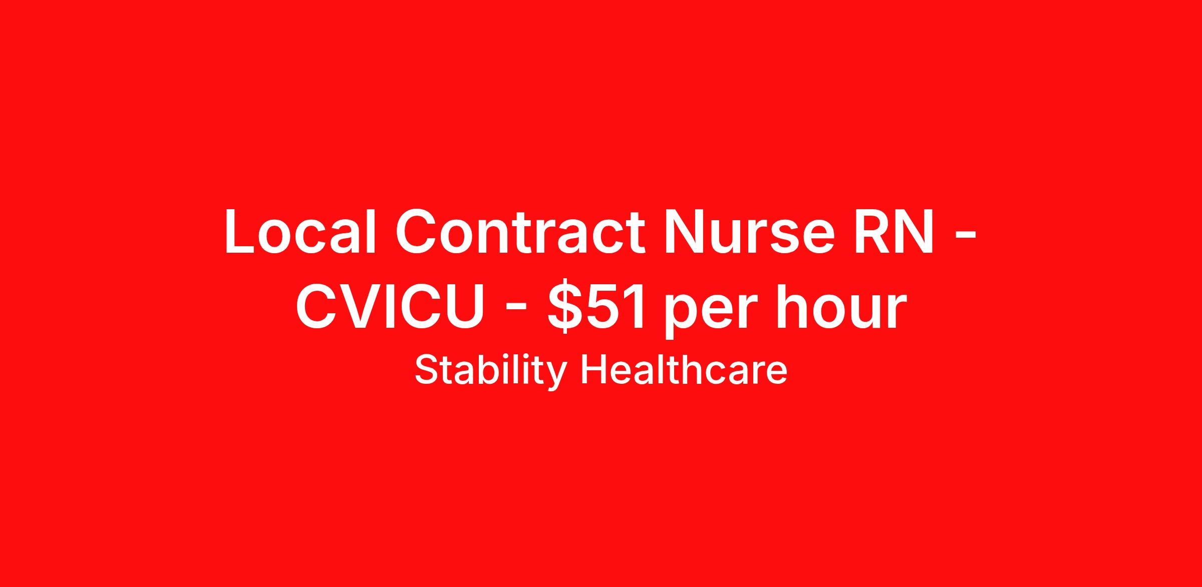 Stability Healthcare is seeking a local contract nurse RN CVICU for a local contract nursing job in Gastonia, North Carolina. Job Description & Requirements Specialty: CVICU Discipline: RN Duration: 13 weeks 36 hours per week Shift: 12 hours, nights Employment Type: Local Contract Stability Healthcare is looking for a CVICU RN contract position in Gastonia, NC. Nurses working in the cardiovascular intensive care unit provide care for patients recovering from open-heart surgery and heart transplants. CVICU Nurses observe changes, perform diagnostics tests, analyze charts, and record medical histories of patients. *$600 travel bonus *Day 1 health insurance with United Healthcare *PTO plan start accruing on day 1, use during contract or cash out at the end! *Guaranteed stipend if facility calls you off *Extra hour bonus earn an additional hourly bonus for working over your weekly contracted hours Stability Job ID L-822790. Pay package is based on 12 hour shifts and 36 hours per week (subject to confirmation) with tax-free stipend amount to be determined. Posted job title: CVICU About Stability Healthcare Stability Healthcare was founded in 2009, with the mission of becoming the best Travel Nursing Agency in California. We have been rated one of the top travel nursing agencies and offer our nurses the highest paying travel nursing jobs available. We have access to the best travel assignments from 1000’s of facilities. You can start the year off in sunny California, spend the Spring in the Colorado Rockies, enjoy the Summer in the Mid-West, experience the change of seasons in Boston and New York, and hit the beaches of Florida in the winter. Our Nurses work in the best hospitals and health systems in the country. Benefits Guaranteed Hours Benefits start day 1