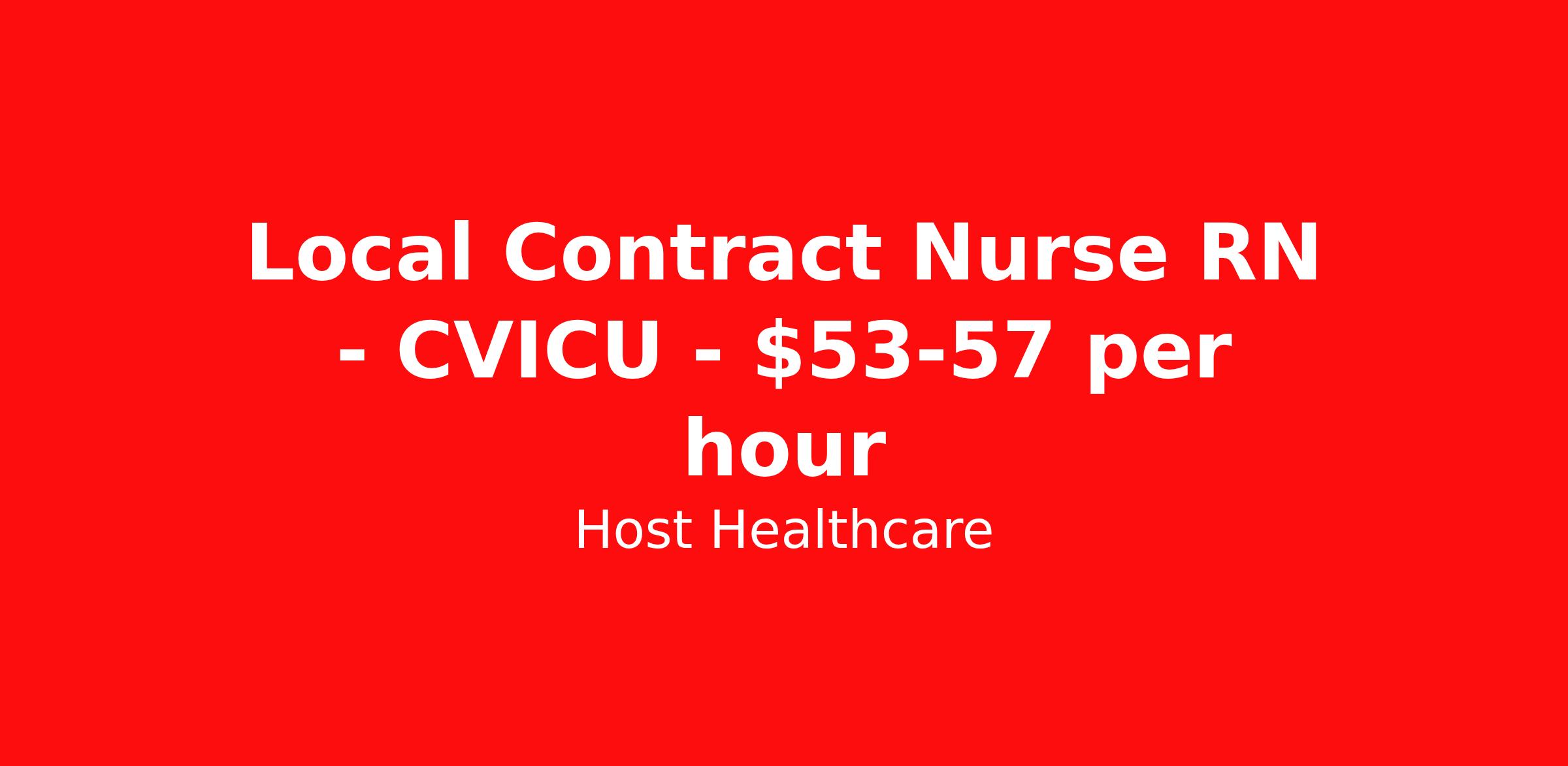 Host Healthcare is seeking a local contract nurse RN CVICU for a local contract nursing job in Waimea, Hawaii. Job Description & Requirements Specialty: CVICU Discipline: RN Start Date: 04/13/2026 Duration: 13 weeks 48 hours per week Shift: 12 hours Employment Type: Local Contract Host Healthcare Job ID La1fVX000002xhPZYAY. Pay package is based on 12 hour shifts and 48 hours per week (subject to confirmation) with tax-free stipend amount to be determined. Posted job title: RN - CVICU About Host Healthcare At Host Healthcare, we provide a truly comfortable experience as you explore your travel nursing, therapy, or allied career. We make your travel healthcare journey easy by taking care of all the details, so you don’t have to. We are on a mission to help others live better and we do this by helping the healers of the world be as comfortable as possible. With access to tens of thousands of travel nursing, therapy, and allied jobs in all 50 states, our responsive and friendly recruiters find your dream position based on what’s important to you. During your assignment, get access to premium benefits, including Day 1 medical that continues up to 30 days between assignments, 401K matching, travel reimbursements, dedicated housing support, and more. We also offer 24/7 support from our team and access to our on-staff clinicians so you can feel comfortable and confident throughout your entire assignment. Travel comfortably with Host Healthcare. Benefits Referral bonus School loan reimbursement Vision benefits Wellness and fitness programs Company provided housing options License and certification reimbursement Life insurance Medical benefits Mileage reimbursement Pet insurance Discount program Employee assistance programs Guaranteed Hours Health savings account Holiday Pay 401k retirement plan Continuing Education Dental benefits