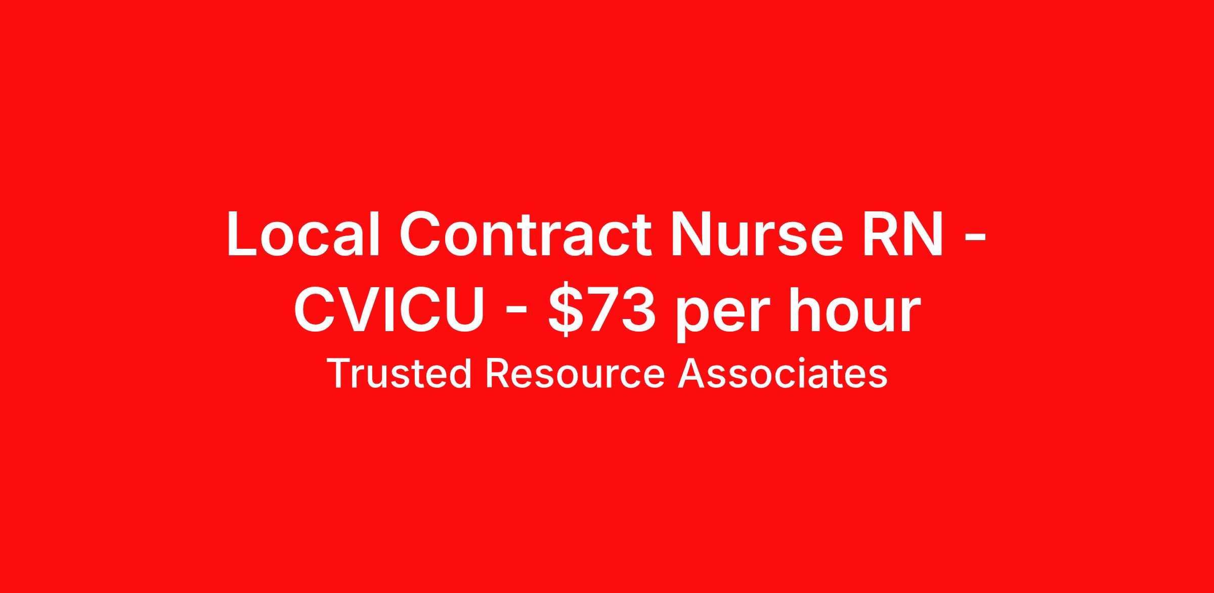 Local Contract Nurse RN - CVICU - $73 per hour