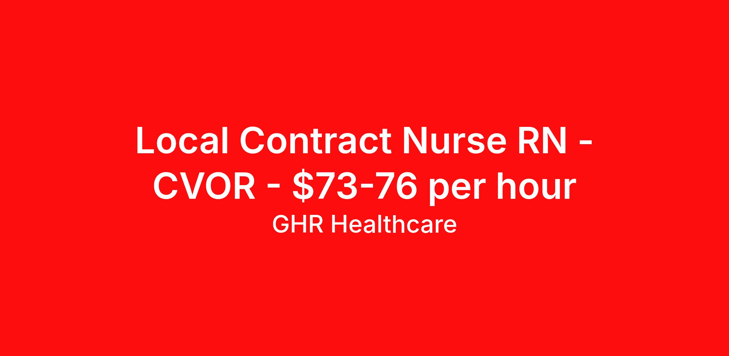 Local Contract Nurse RN - CVOR - $73-76 per hour