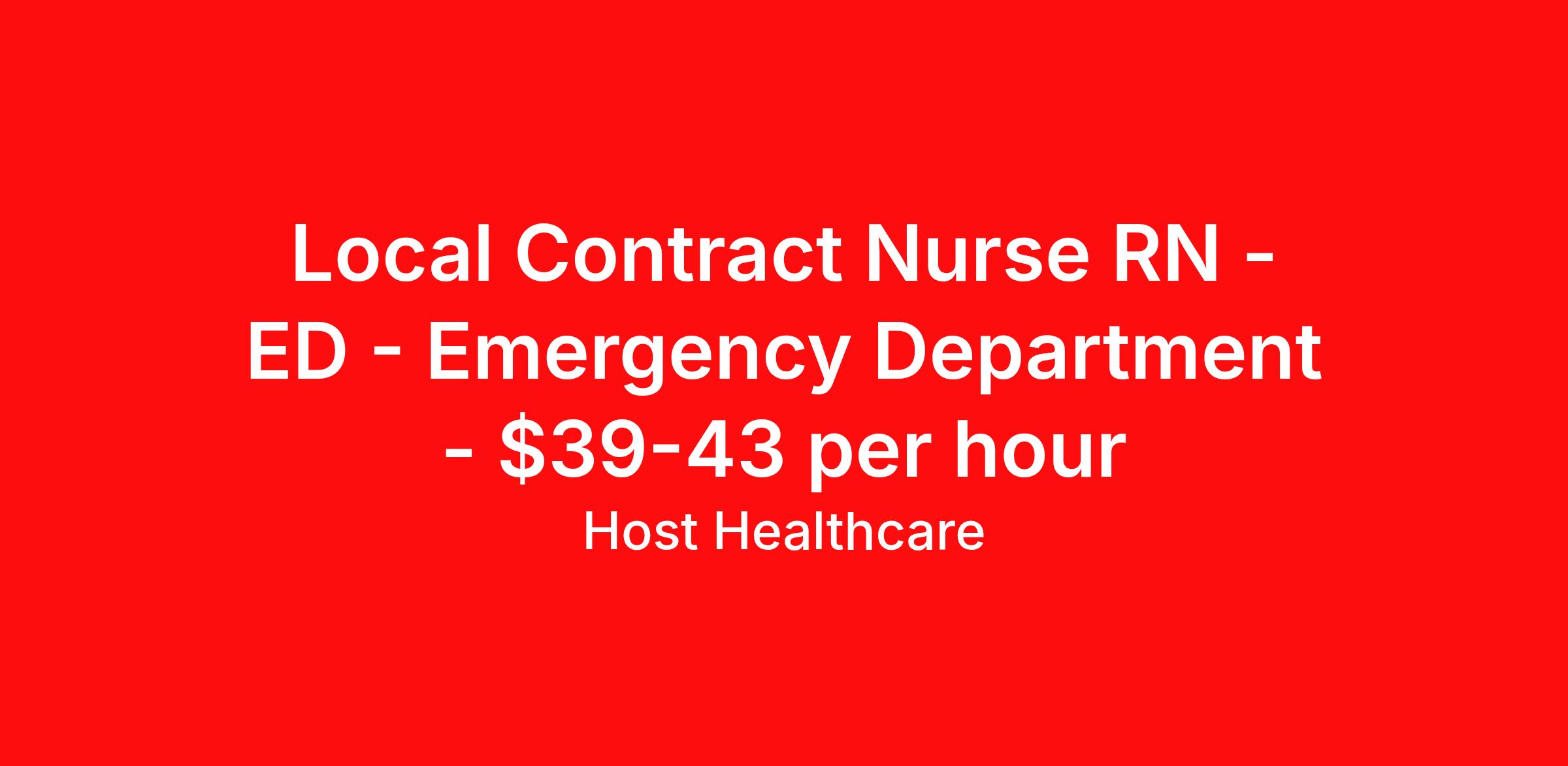 Local Contract Nurse RN - ED - Emergency Department - $39-43 per hour