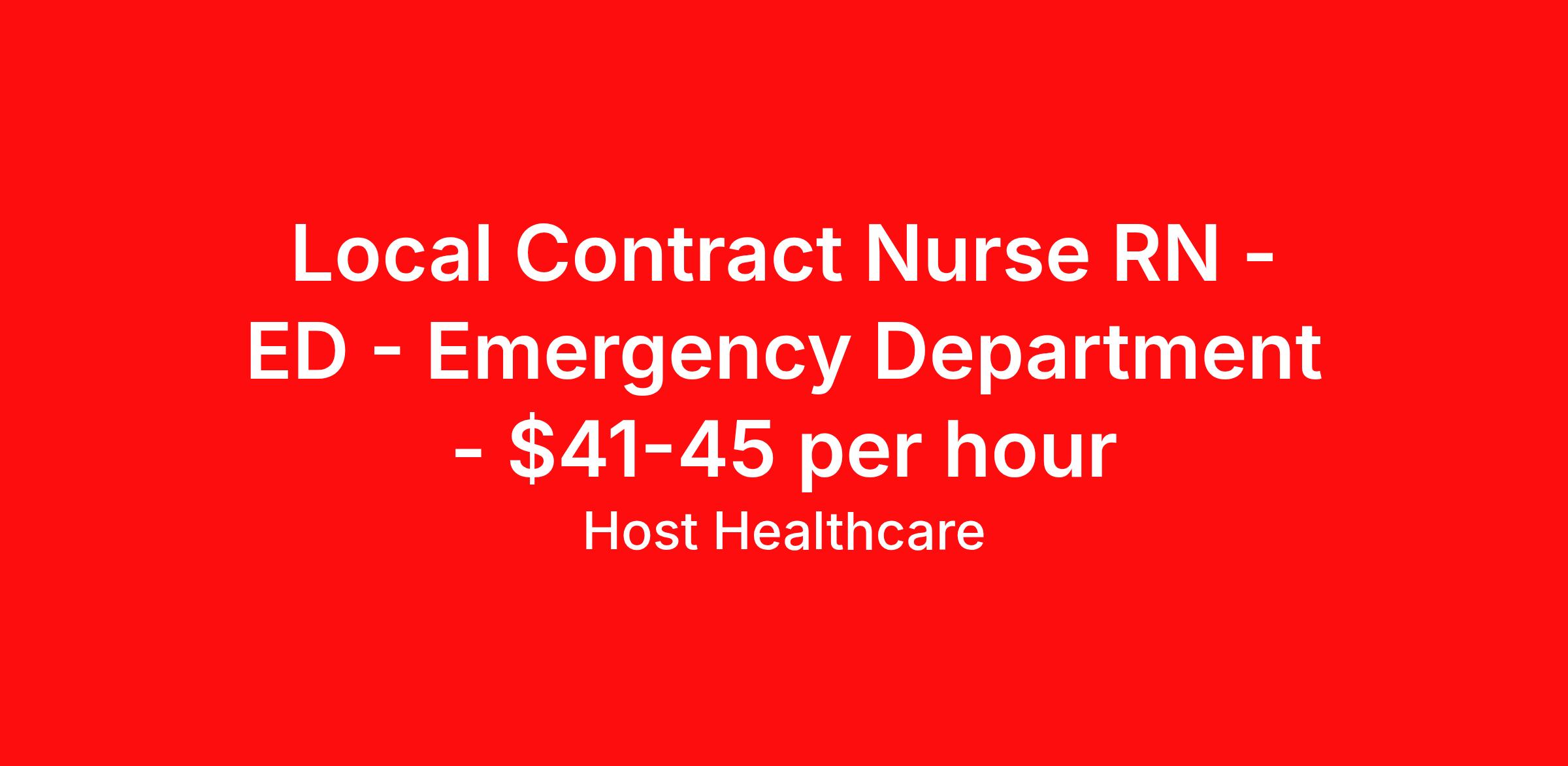 Local Contract Nurse RN - ED - Emergency Department - $41-45 per hour