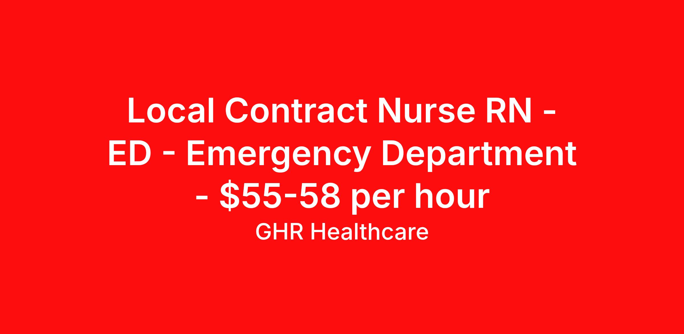 Local Contract Nurse RN - ED - Emergency Department - $55-58 per hour
