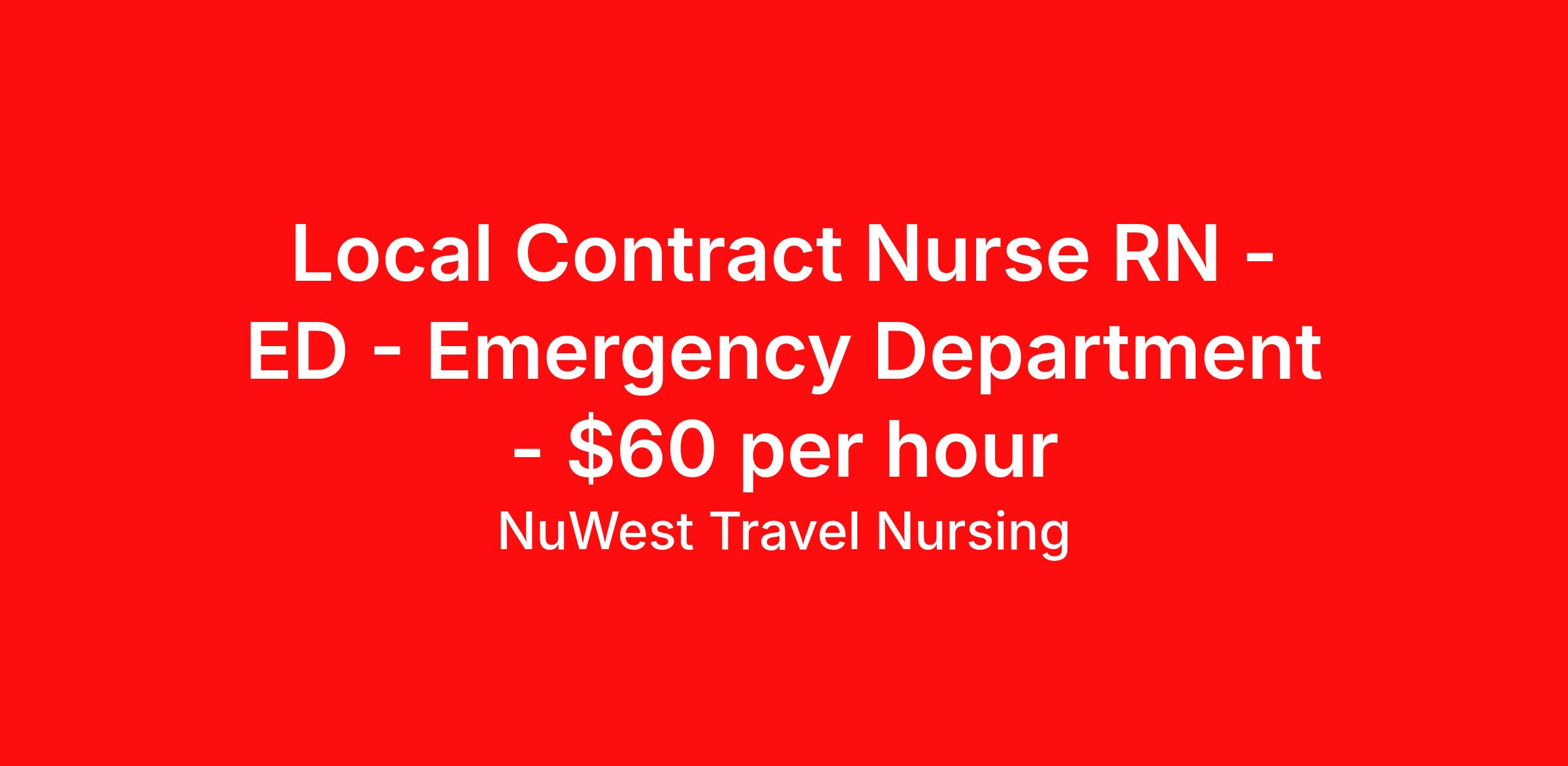 Local Contract Nurse RN - ED - Emergency Department - $60 per hour