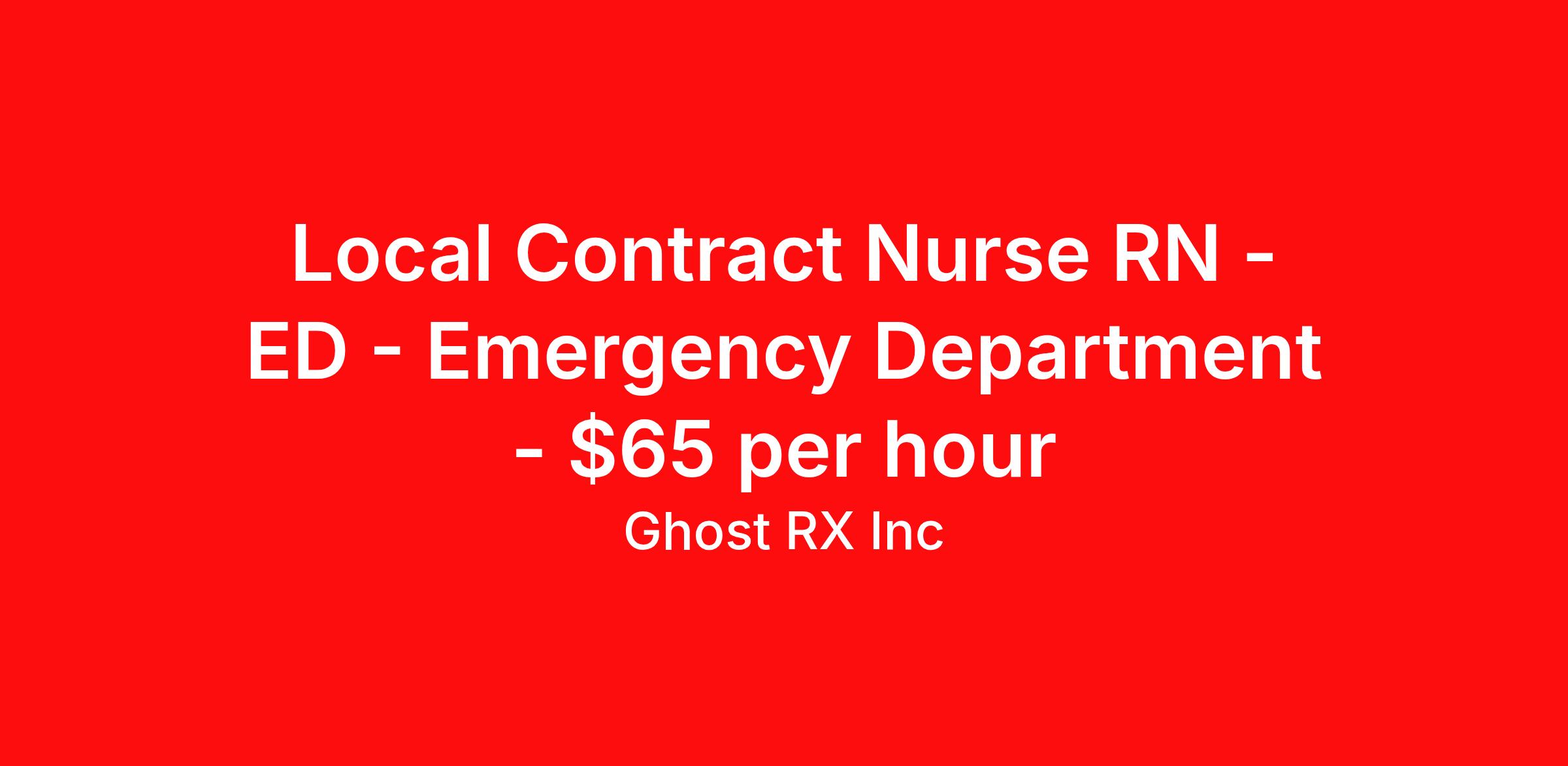 Local Contract Nurse RN - ED - Emergency Department - $65 per hour