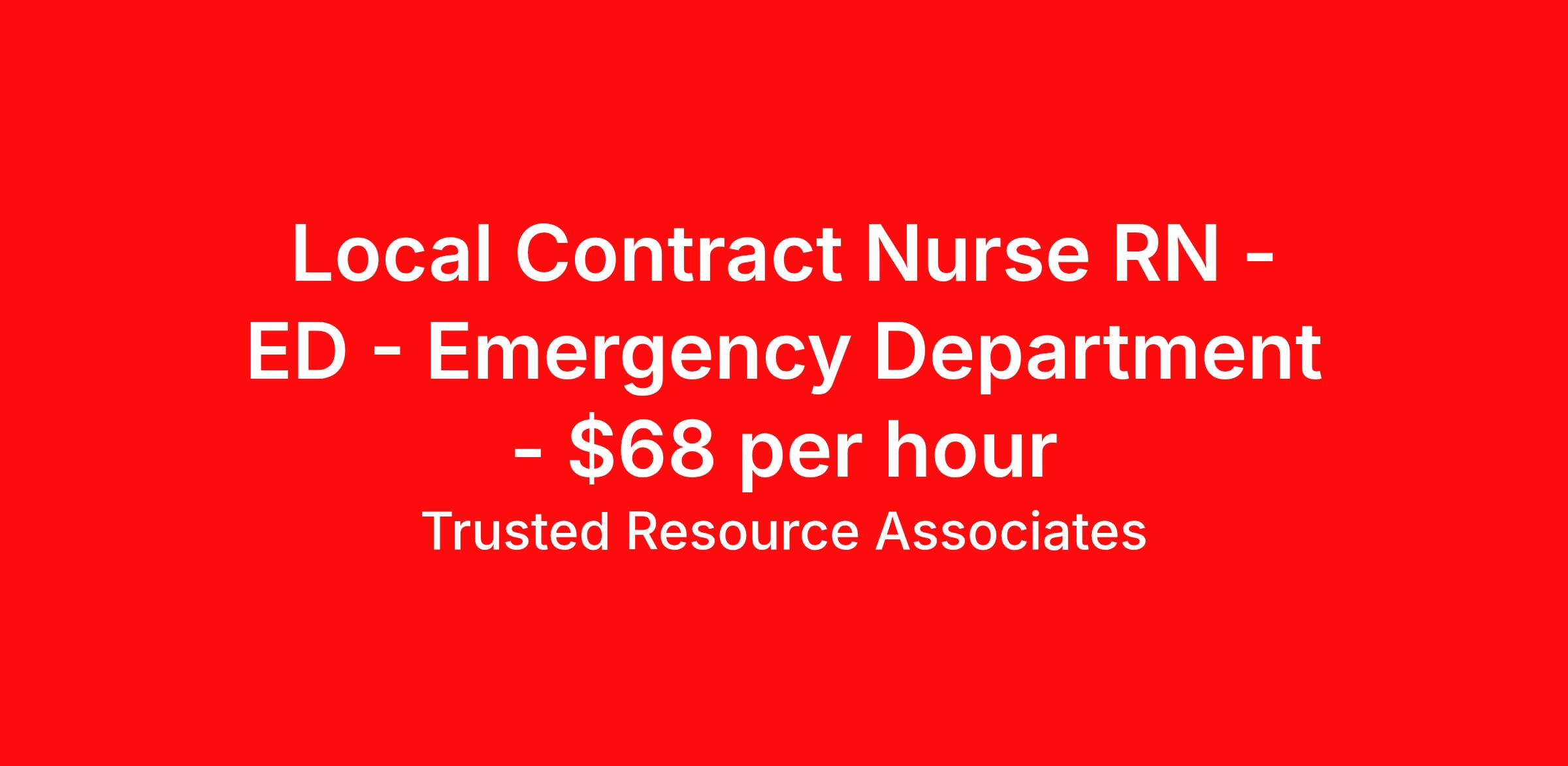 Local Contract Nurse RN - ED - Emergency Department - $68 per hour