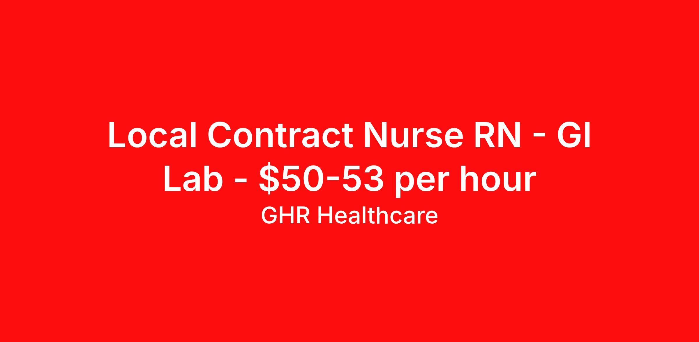 GHR Healthcare is seeking a local contract nurse RN GI Lab for a local contract nursing job in Easton, Pennsylvania. Job Description & Requirements Specialty: GI Lab Discipline: RN Start Date: 04/13/2026 Duration: 13 weeks 40 hours per week Shift: 10 hours, days Employment Type: Local Contract GI Nurse-Not PACU Intra, Pre and post op with floatation to APU pre/post M-F 630a-5p, 4-10s, 40 hours Call 2 nights/week 5p-9p, 1 weekend/month 7a-5p Aim Start: 4/13 At GHR Healthcare, we want to make your travel RN experience a great one! As a GHR Travel Nurse, we are committed to giving you the chance to experience life, while saving lives. We offer great pay and one of the best benefits packages in the industry, including: • Flexible scheduling options • Personalized service • Health insurance • Referral bonuses • Weekly pay • GHR pays for all additional medical compliance required by facility Please Contact me Stephanie Berardi at or email your resume directly to if you are interested! About GHR Healthcare For over 30 years, GHR Healthcare has been the bridge between healthcare professionals and the facilities that need them nationwide. We're committed to uncovering your ideal fit, supported by GHR's dedication to competitive compensation, transparent communication, and a devoted team that genuinely cares about your career journey. You can trust us to stand by your side as your advocate, confidante, and partner in advancing your career. At GHR, care and consideration are at the heart of everything we do. Visit ghrhealthcare.com to learn more.