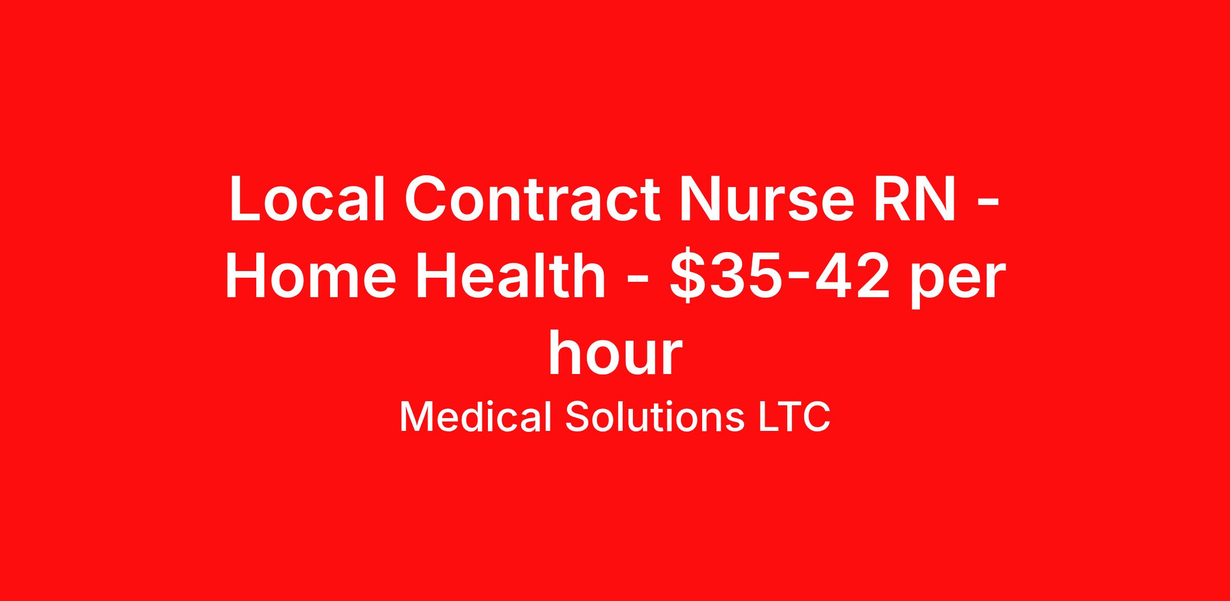 Medical Solutions LTC is seeking a local contract nurse RN Home Health for a local contract nursing job in Oklahoma City, Oklahoma. Job Description & Requirements Specialty: Home Health Discipline: RN Duration: 13 weeks 36 hours per week Shift: 8 hours, days Employment Type: Local Contract We’re seeking talented healthcare professionals whose adventure game is as strong as their clinical game. Those that want flexibility and high pay, we have the positions for you! Some of the industry-leading benefits enjoyed by Medical Solutions travel nurses and travel allied healthcare professionals include: Day One Medical, Dental, and Vision with low premiums Day One 401(k) with Company Contribution Personalized Compensation Packages Paid, Private, Fully Furnished, Pet-Friendly Housing Dedicated Recruiter and 24/7 Customer Care Line Per Diem Allowance and Paid Travel Licensure and Certification Reimbursement Free Liability Coverage Voluntary Benefits: Critical Illness, Hospital Indemnity, Accident, and Pet Insurance Equal Employment Opportunity And More! Estimated pay package based on bill rate at time job was posted. Bill rates can change frequently and without notice. Exact pay package may vary based on guaranteed hours, distance being traveled, and customizations available for travelers. Home Health RN for OK Medical Solutions LTC Job ID 1060324L. Posted job title: Home Health About Medical Solutions LTC At Medical Solutions, we’re people who care, helping people who care. No matter how you look at it, there’s a whole lot of care going on in our world and that’s just the way we like it. What do we do? Medical Solutions is one of the nation’s largest providers of total workforce solutions in the healthcare industry, connecting nurses and allied health clinicians with hospitals and healthcare systems across the country and around the corner. Through our family of brands, we also serve a segment of clients outside of the healthcare space. And we’re the very best at what we do. You’ll love our culture that’s filled with heart and soul. As a company and employer, we’re sincerely and unabashedly us. We lead as humans first and believe the unique qualities of each team member make us better together. We share a purpose for helping others and the drive to make a difference. And we offer endless opportunities for personal and professional growth, throughout your career. At Medical Solutions, you’ll find a great place to work and a career home. We’ve received Best Places to Work awards, landed top industry awards, and received accolades for the impact we’ve made in business and within our community. But the only way to really get to know us, is to join us. We think you’ll fit right in. Benefits Medical benefits Wellness and fitness programs Employee assistance programs Cancelation protection Discount program Mileage reimbursement Life insurance Vision benefits Referral bonus Pet insurance Continuing Education Holiday Pay License and certification reimbursement Guaranteed Hours Benefits start day 1 Company provided housing options 401k retirement plan Weekly pay Dental benefits