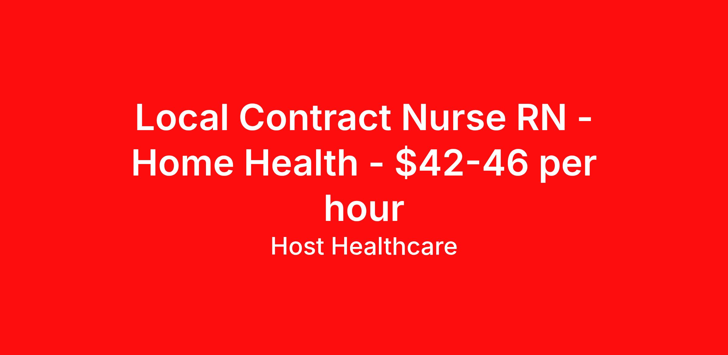 Host Healthcare is seeking a local contract nurse RN Home Health for a local contract nursing job in Portage, Michigan. Job Description & Requirements Specialty: Home Health Discipline: RN Start Date: 04/08/2026 Duration: 13 weeks 40 hours per week Shift: 9 hours, days Employment Type: Local Contract Host Healthcare Job ID La1fVJ000006Ezg5YAC. Pay package is based on 9 hour shifts and 40 hours per week (subject to confirmation) with tax-free stipend amount to be determined. Posted job title: RN - Home Health About Host Healthcare At Host Healthcare, we provide a truly comfortable experience as you explore your travel nursing, therapy, or allied career. We make your travel healthcare journey easy by taking care of all the details, so you don’t have to. We are on a mission to help others live better and we do this by helping the healers of the world be as comfortable as possible. With access to tens of thousands of travel nursing, therapy, and allied jobs in all 50 states, our responsive and friendly recruiters find your dream position based on what’s important to you. During your assignment, get access to premium benefits, including Day 1 medical that continues up to 30 days between assignments, 401K matching, travel reimbursements, dedicated housing support, and more. We also offer 24/7 support from our team and access to our on-staff clinicians so you can feel comfortable and confident throughout your entire assignment. Travel comfortably with Host Healthcare. Benefits Referral bonus School loan reimbursement Vision benefits Wellness and fitness programs Company provided housing options License and certification reimbursement Life insurance Medical benefits Mileage reimbursement Pet insurance Discount program Employee assistance programs Guaranteed Hours Health savings account Holiday Pay 401k retirement plan Continuing Education Dental benefits