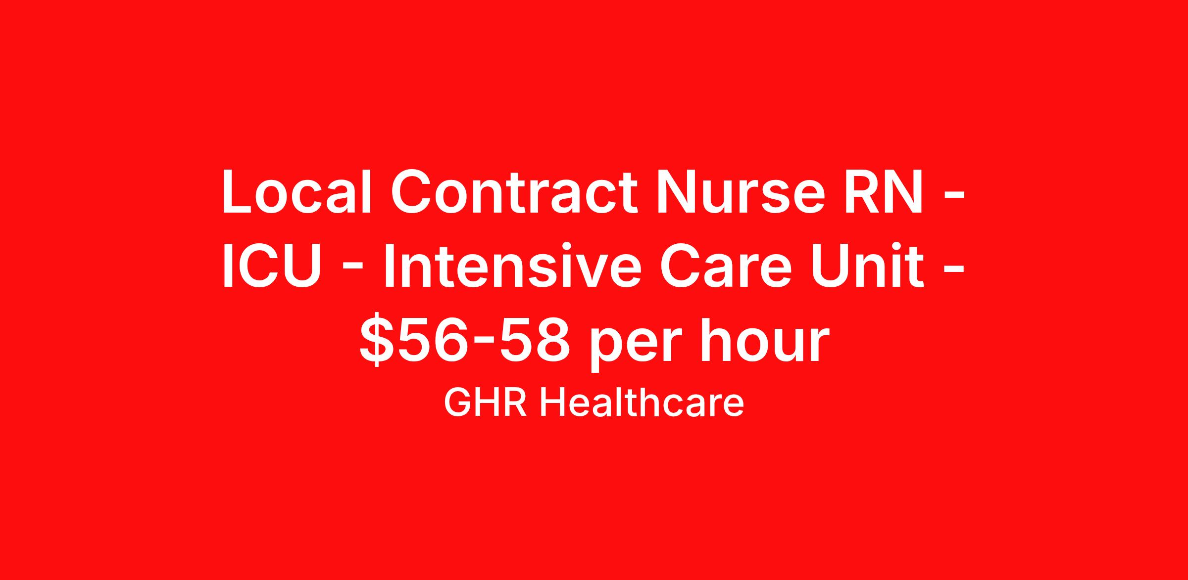 Local Contract Nurse RN - ICU - Intensive Care Unit - $56-58 per hour