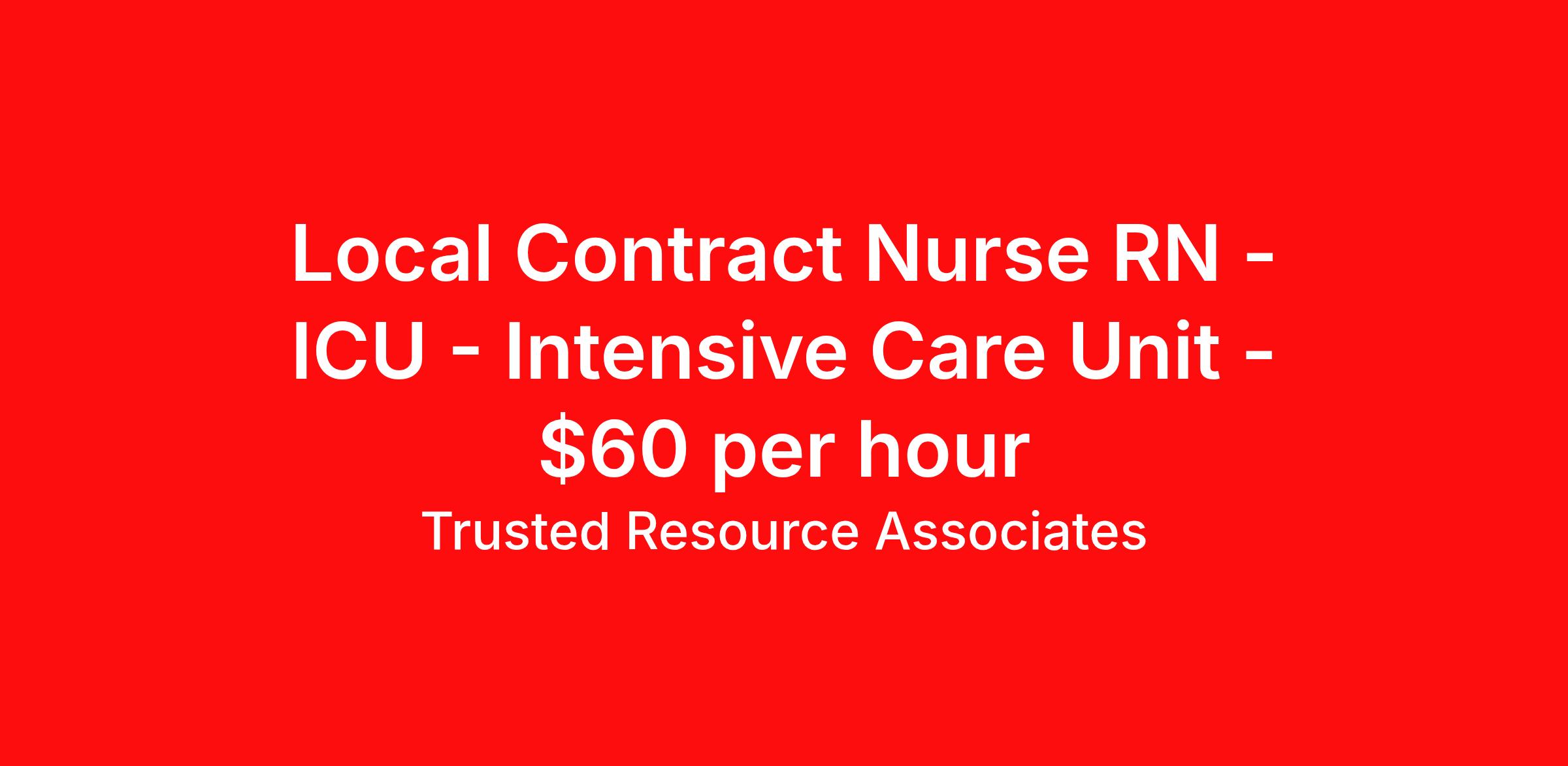 Local Contract Nurse RN - ICU - Intensive Care Unit - $60 per hour