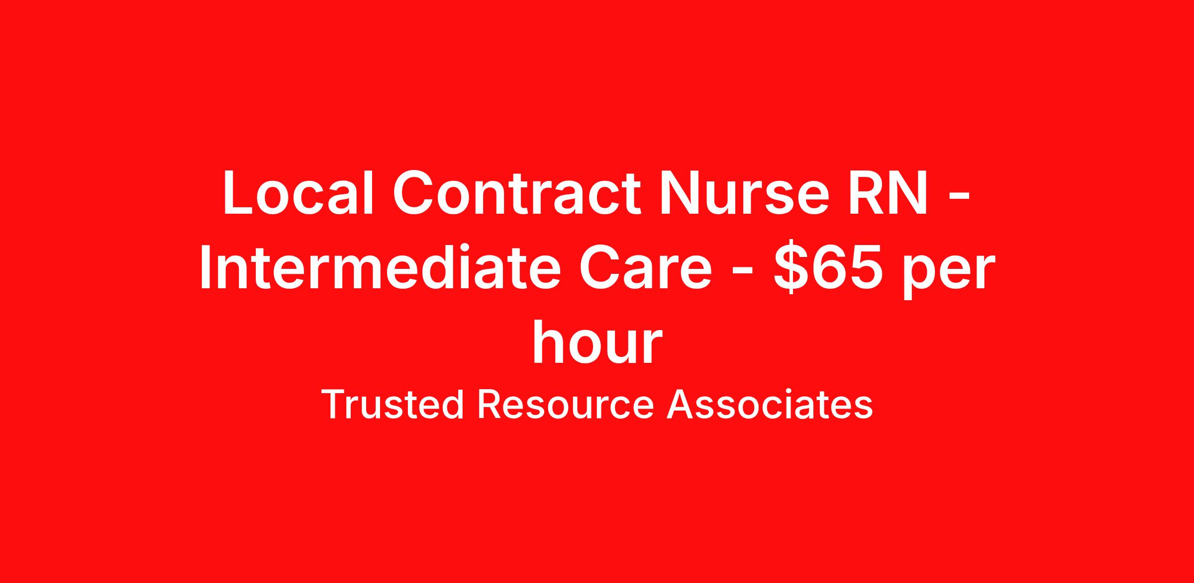 Trusted Resource Associates (TRA) is seeking a local contract nurse RN Intermediate Care for a local contract nursing job in Rock Hill, South Carolina. Job Description & Requirements Specialty: Intermediate Care Discipline: RN Start Date: 04/01/2026 Duration: 13 weeks 36 hours per week Shift: 12 hours, nights Employment Type: Local Contract TRA RN IMCU TRA is Tenet's in-house nationwide contingent pool for Nursing and Allied travel and local contracts. Receive a greater level of Contract security compared to with an outside agency. BENEFITS - Guaranteed hours for Travel Contracts - Preferred Booking Agreement for Local Contracts - Weekly Pay - Holiday Pay - Contract Security compared to a contract with an outside agency Minimum education Graduate of an accredited School of nursing Minimum Experience Must have 2 years of Acute Care nursing experience with a minimum one year current in the IMCU / PCU Required Certification/Licensure - Must be currently licensed, certified or registered to practice profession as required by law, regulation in state of practice or policy. Must meet all certification requirements for each nursing specialty supported - American Heart Association - CPR-Basic Life Support - Other credentialing items, such as a skills checklist and health related documents, which will be specified by your Recruiter. Our Hire Process - We do qualify our clinicians to meet or exceed the minimum requirements of a travel or local assignment. If you are qualified, we may direct-hire you, reducing the time we can get you to work! When you reach out to a TRA Recruiter for more details, ensure your Vivian profile includes your most updated resume! Trusted Resource Associates (TRA) Job ID 500088. Benefits 401k retirement plan Weekly pay Holiday Pay Referral bonus