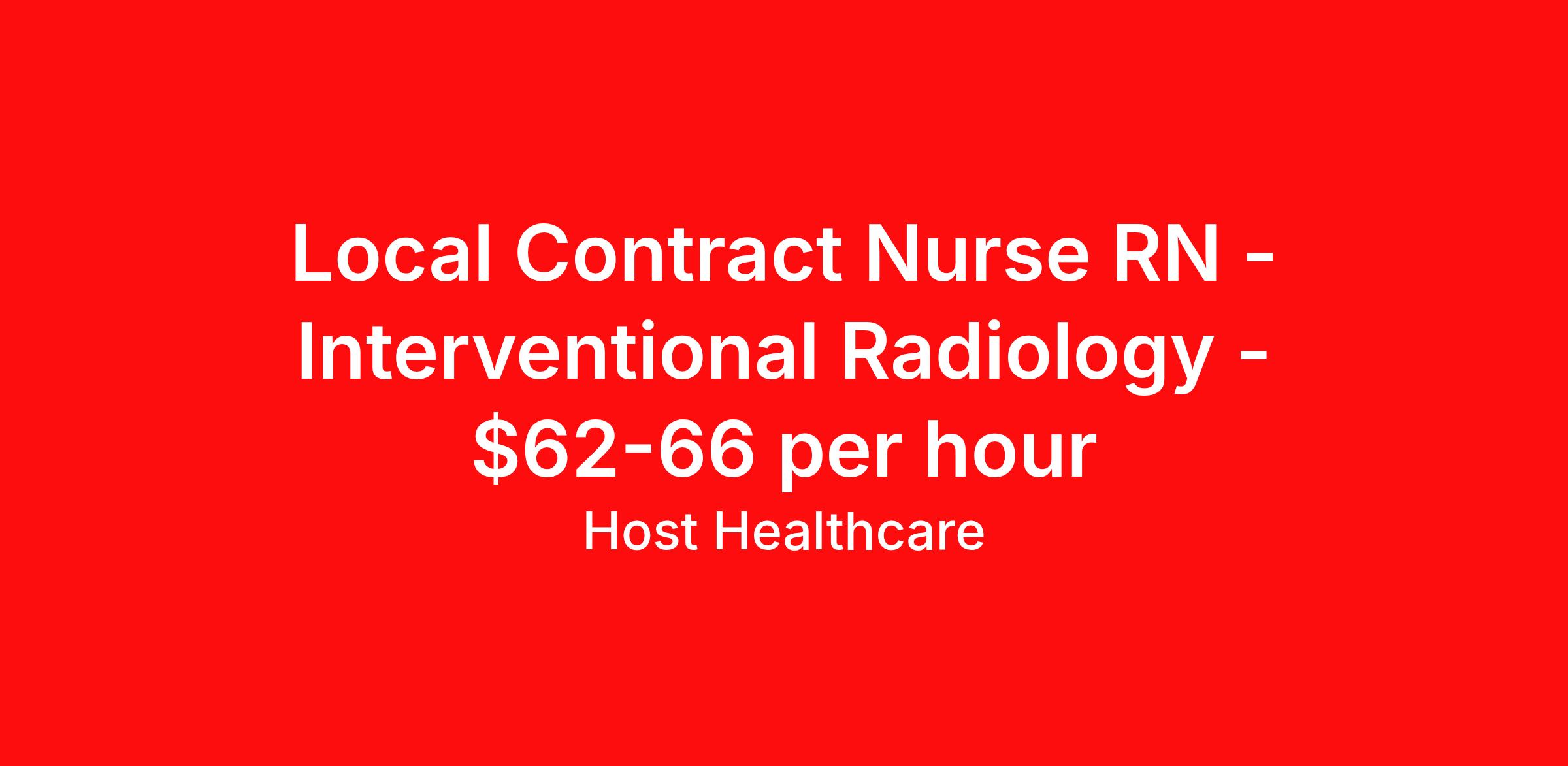 Local Contract Nurse RN - Interventional Radiology - $62-66 per hour
