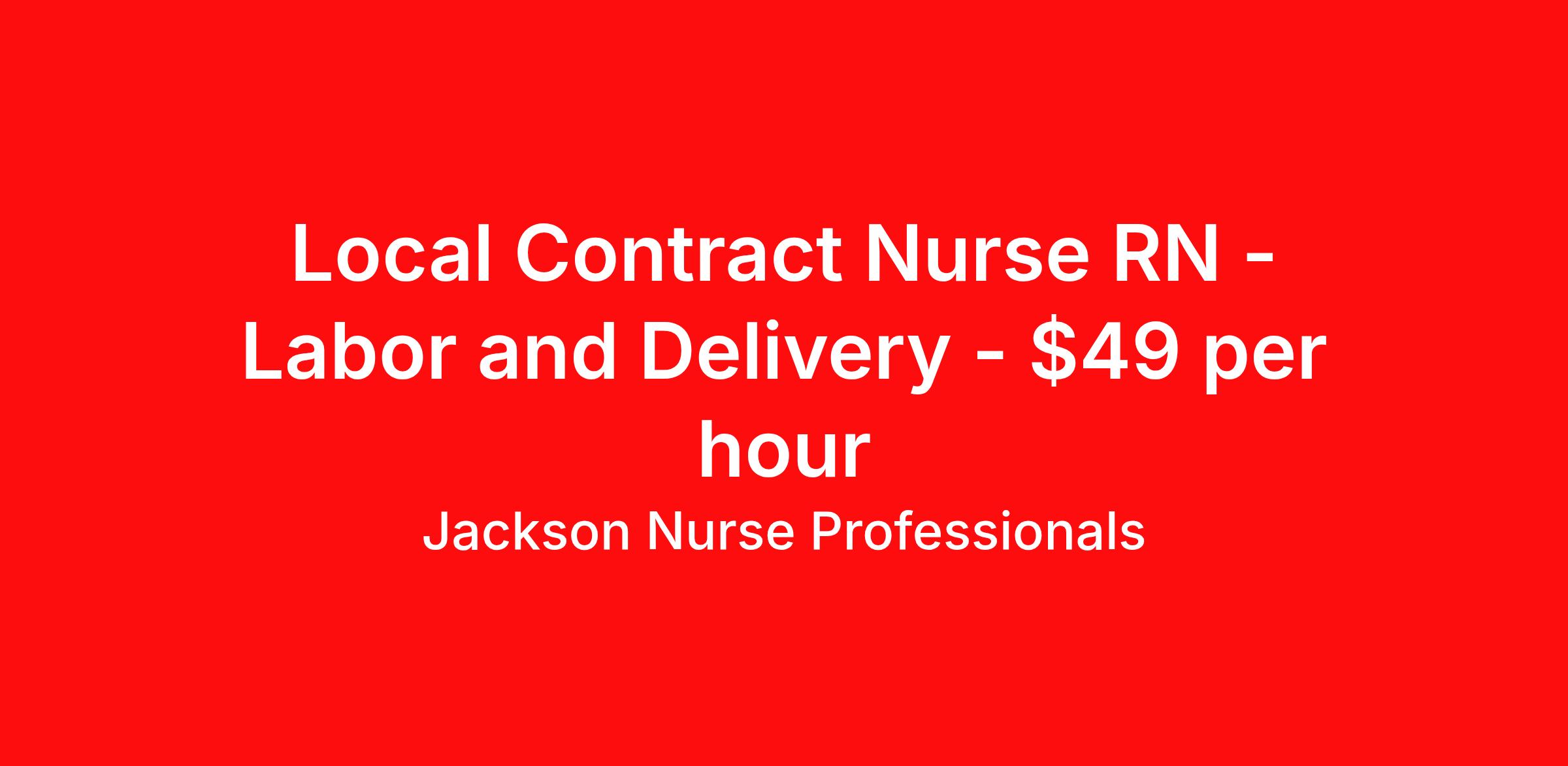 Jackson Nurse Professionals is seeking a local contract nurse RN Labor and Delivery for a local contract nursing job in Portsmouth, Virginia. Job Description & Requirements Specialty: Labor and Delivery Discipline: RN Start Date: ASAP Duration: 52 weeks 36 hours per week Shift: 12 hours, days, nights Employment Type: Local Contract About Jackson Nurse Professionals Filling critical needs in patient care, Jackson Nurse Professionals delivers cost-effective travel nurse staffing solutions to over 500 hospitals, outpatient clinics, and home health clients nationwide. Awarded Best of Staffing - Talent and Client 2024, and rated as a Top Workplace 2023 by the Orlando Sentinel, Jackson Nurse Professionals goes the extra mile to provide travel nurses the career they deserve, while providing clients with a large range of highly skilled nurses to fill short, long-term, and temporary assignments. As a member of Jackson Healthcare’s family of award-winning staffing companies, we’re part of a growing community that’s impacting 10 million patients nationwide. Join our mission to improve the delivery of patient care, and the lives of everyone we touch.