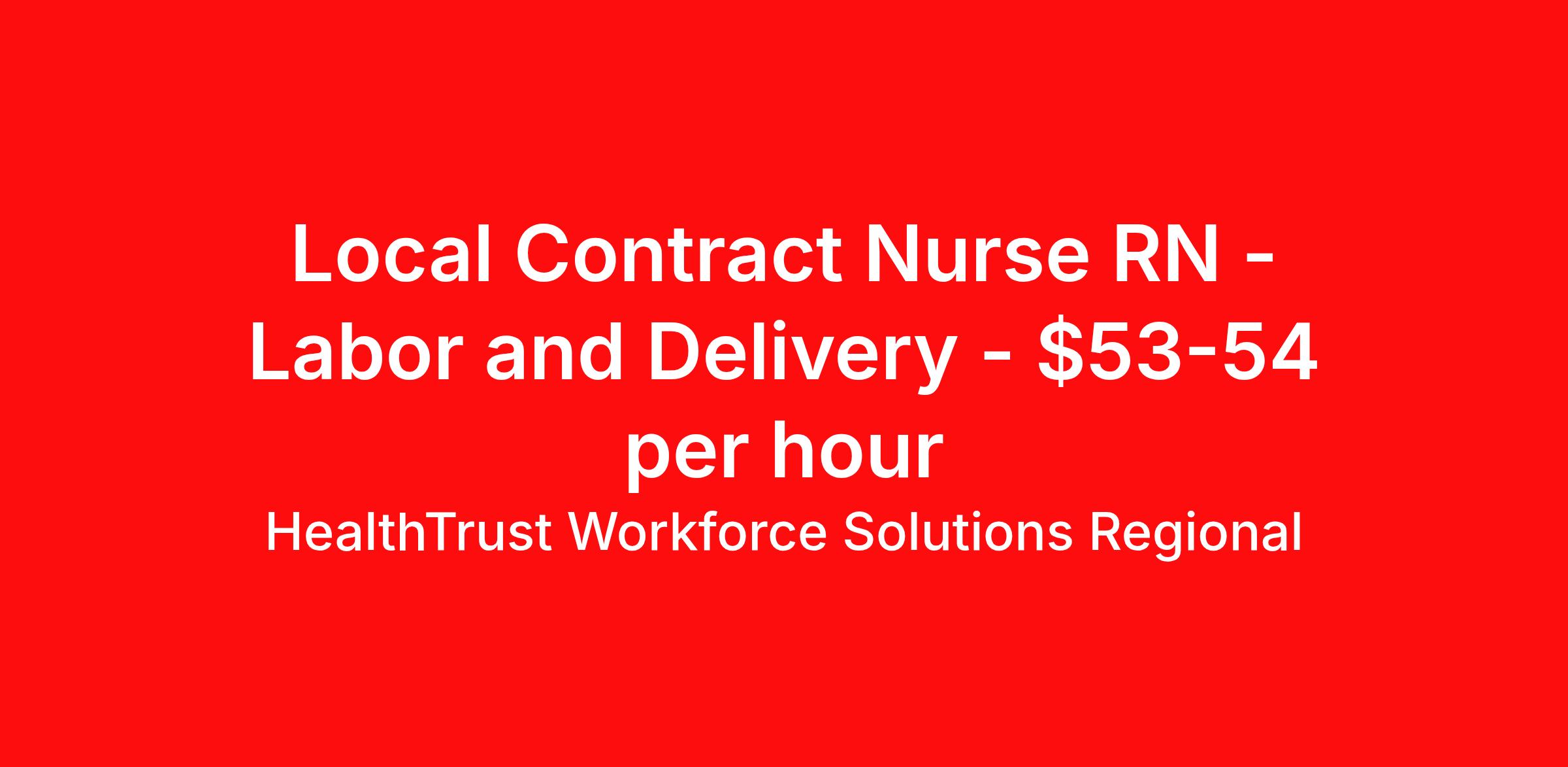 HealthTrust Workforce Solutions Regional is seeking a local contract nurse RN Labor and Delivery for a local contract nursing job in Reston, Virginia. Job Description & Requirements Specialty: Labor and Delivery Discipline: RN Duration: 13 weeks 3 hours per week Shift: 12 hours, nights Employment Type: Local Contract Unit Specifics: 15 LDR 3 OB triage rooms 3 ORs 4 bay PACU 4 antepartum rooms. Level III NICU Documentation system: Meditech, CPN Floating policy: within women’s and children’s service line Patient Experience requirements: labor and delivery, circulate c sections, IV drips such as magnesium, high acuity Hospital Specifics- Certifications: BLS, ACLS, NRP, AWOHHN Fetal Heart Rate Intermediate Advanced skills needed: Experience with fast paced LD unit Experience with scrub role and circulating in OR helpful Procedures performed on unit: c/sections, epidurals, blood patch, spinals, cerclage, version We do not require EFM intermediate We do not perform blood patch almost ever so please remove that Resource pool, per diem, and travel contracts available as well.