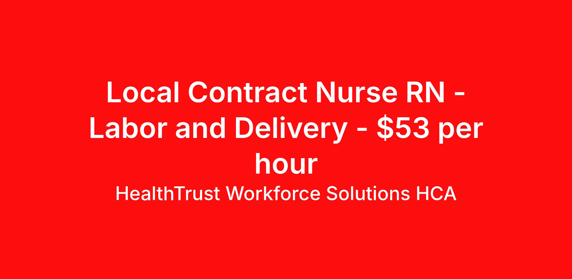 HealthTrust Workforce Solutions HCA is seeking a local contract nurse RN Labor and Delivery for a local contract nursing job in Chattanooga, Tennessee. Job Description & Requirements Specialty: Labor and Delivery Discipline: RN Start Date: 03/30/2026 Duration: 13 weeks 36 hours per week Shift: 12 hours, days Employment Type: Local Contract 7a-7pm every other weekend Number of Beds in Unit- 9 labor rooms, 6 triage rooms, 3 AP rooms, 3 ORs Patient Ratios- 1:1-2 laboring, 1:2-3 AP, 1:1 c/s and PACU Floating policy: possible to float to Mother Baby but not frequently. Will not float to any other department Certifications Required: AWHONN intermediate fetal heart monitoring, NRP, ACLS, BLS Must have: 2 years of L&D experience, preferably 1 or more travel contracts completed Procedures performed on unit: cervical exams, IUPC and FSE placement, vaginal deliveries, IV starts with lab draws, circulating cesarean sections, recovering cesarean sections (usually with spinal anesthesia but general anesthesia occasionally) About HealthTrust Workforce Solutions HCA At HealthTrust Workforce Solutions, healthcare is not just about the four walls of a facility but about the people who provide and receive care. Our focus is on empowering healthcare professionals to deliver exceptional patient experiences by providing them with the necessary skills, tools, and support. We partner with healthcare facilities nationwide to ensure that the right professionals are in the right roles. We prioritize our clinicians by giving them a voice and access to opportunities to fulfill their mission of improving lives by providing quality patient care. We are committed to our core values of Trust, Innovation, Adaptability, Courage, and Accountability. We are dedicated to positively impacting the healthcare industry by providing first-priority access to more than 200,000 jobs nationwide to our healthcare professionals. Join us and be part of the HealthTrust family, where you can make a difference every day. We embrace our changing environment, and we maintain a culture that has a rich tradition of transforming itself to meet the challenges of the future. MISSION STATEMENT While putting great people in the right roles is essential, our mission is far greater. We want our clinicians to be part of the HealthTrust family, where healthcare professionals have a voice and are empowered with the right tools and opportunities to fulfill their personal mission of improving lives. Plus, as a preferred partner to thousands of top-performing hospitals, we provide our healthcare professionals with first-priority access to more than 200,000 jobs nationwide. Benefits Dental benefits Vision benefits Referral bonus Continuing Education Life insurance
