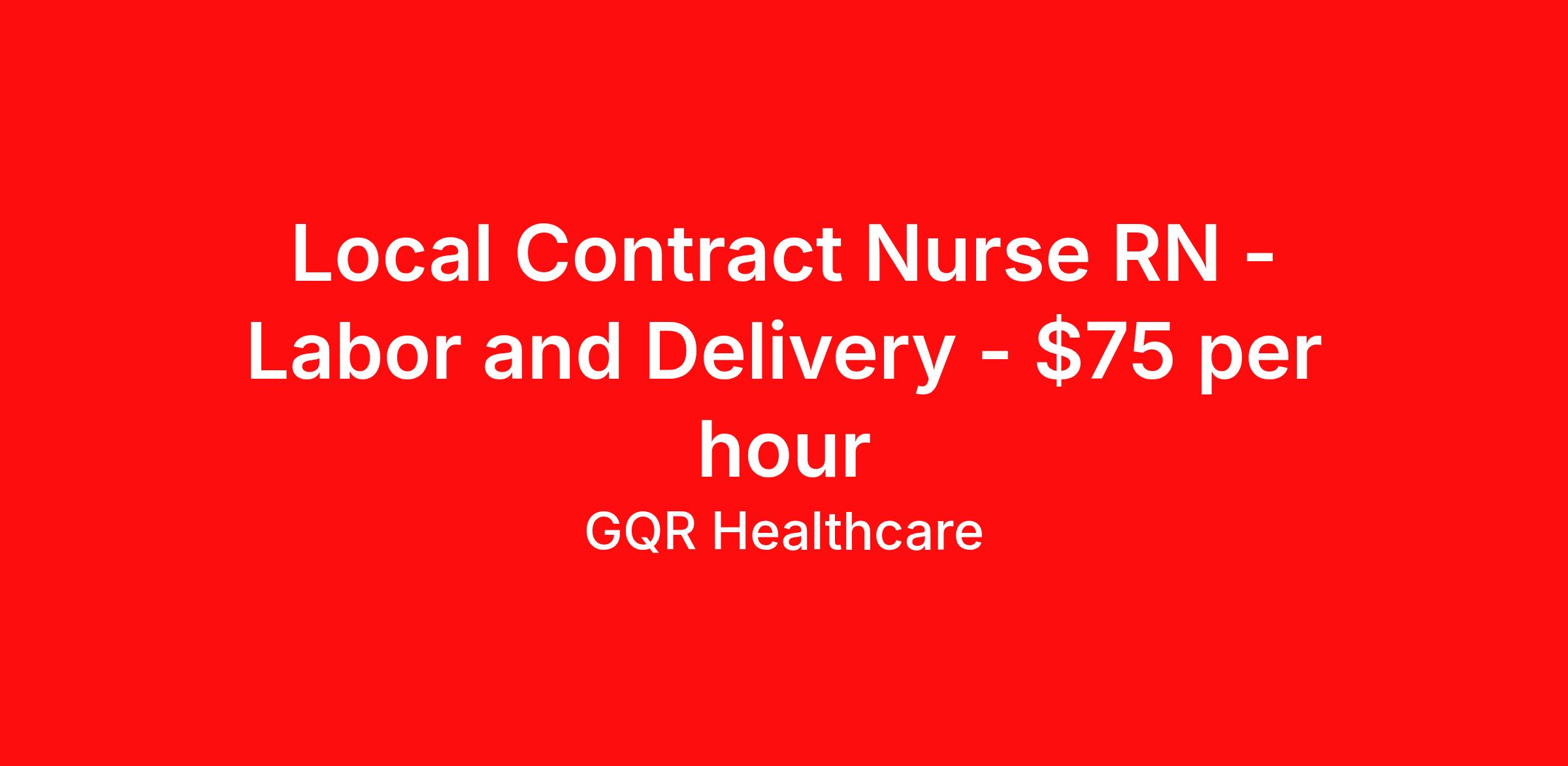 Local Contract Nurse RN - Labor and Delivery - $75 per hour
