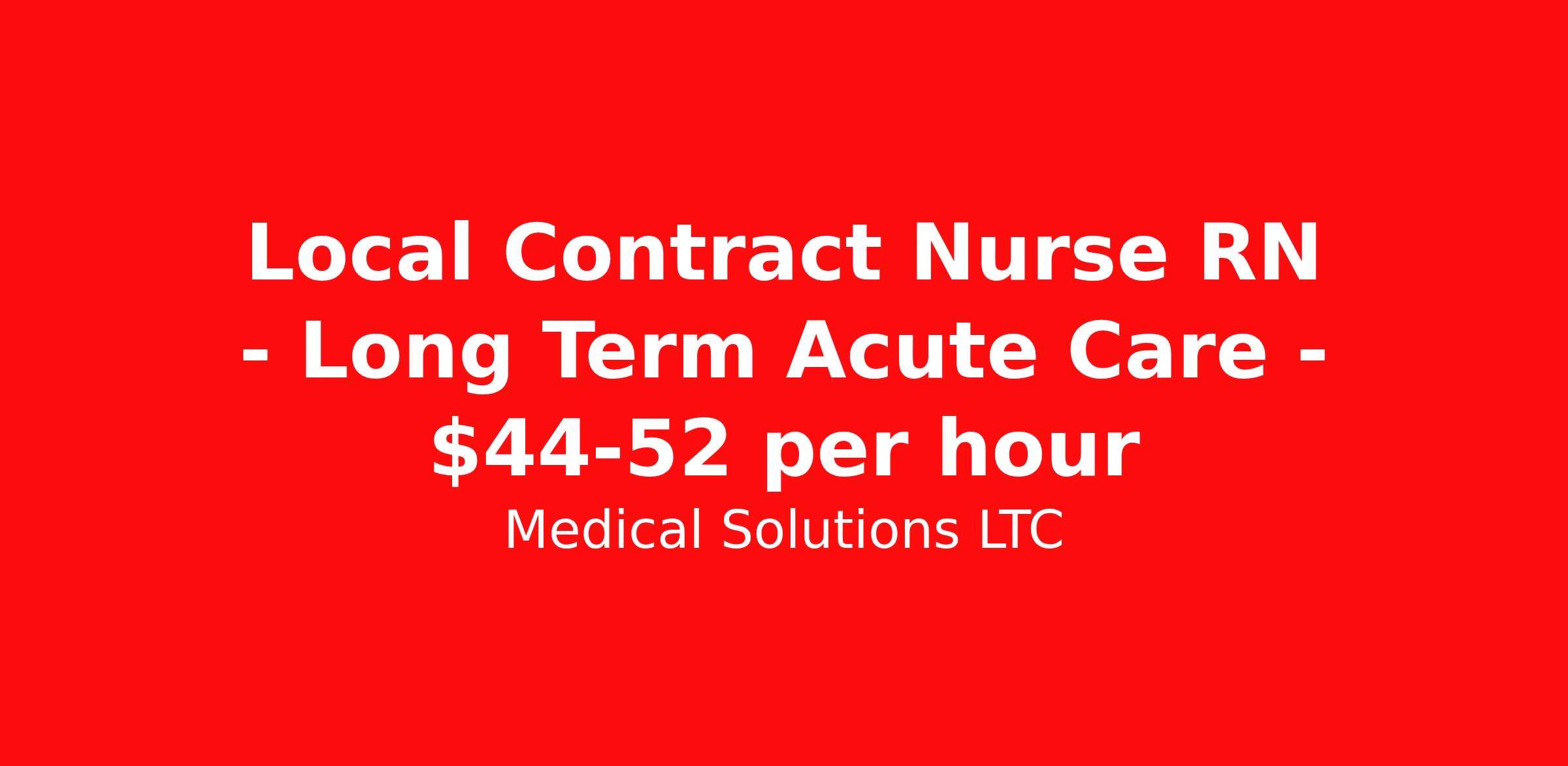 Medical Solutions LTC is seeking a local contract nurse RN Long Term Acute Care for a local contract nursing job in Milwaukee, Wisconsin. Job Description & Requirements Specialty: Long Term Acute Care Discipline: RN Duration: 13 weeks 36 hours per week Shift: 12 hours, nights Employment Type: Local Contract We’re seeking talented healthcare professionals whose adventure game is as strong as their clinical game. Those that want flexibility and high pay, we have the positions for you! Some of the industry-leading benefits enjoyed by Medical Solutions travel nurses and travel allied healthcare professionals include: Day One Medical, Dental, and Vision with low premiums Day One 401(k) with Company Contribution Personalized Compensation Packages Paid, Private, Fully Furnished, Pet-Friendly Housing Dedicated Recruiter and 24/7 Customer Care Line Per Diem Allowance and Paid Travel Licensure and Certification Reimbursement Free Liability Coverage Voluntary Benefits: Critical Illness, Hospital Indemnity, Accident, and Pet Insurance Equal Employment Opportunity And More! Estimated pay package based on bill rate at time job was posted. Bill rates can change frequently and without notice. Exact pay package may vary based on guaranteed hours, distance being traveled, and customizations available for travelers. Medical Solutions LTC Job ID 1073808L. Posted job title: LTAC (Long Term Acute Care) About Medical Solutions LTC At Medical Solutions, we’re people who care, helping people who care. No matter how you look at it, there’s a whole lot of care going on in our world and that’s just the way we like it. What do we do? Medical Solutions is one of the nation’s largest providers of total workforce solutions in the healthcare industry, connecting nurses and allied health clinicians with hospitals and healthcare systems across the country and around the corner. Through our family of brands, we also serve a segment of clients outside of the healthcare space. And we’re the very best at what we do. You’ll love our culture that’s filled with heart and soul. As a company and employer, we’re sincerely and unabashedly us. We lead as humans first and believe the unique qualities of each team member make us better together. We share a purpose for helping others and the drive to make a difference. And we offer endless opportunities for personal and professional growth, throughout your career. At Medical Solutions, you’ll find a great place to work and a career home. We’ve received Best Places to Work awards, landed top industry awards, and received accolades for the impact we’ve made in business and within our community. But the only way to really get to know us, is to join us. We think you’ll fit right in. Benefits Medical benefits Wellness and fitness programs Employee assistance programs Cancelation protection Discount program Mileage reimbursement Life insurance Vision benefits Referral bonus Pet insurance Continuing Education Holiday Pay License and certification reimbursement Guaranteed Hours Benefits start day 1 Company provided housing options 401k retirement plan Weekly pay Dental benefits