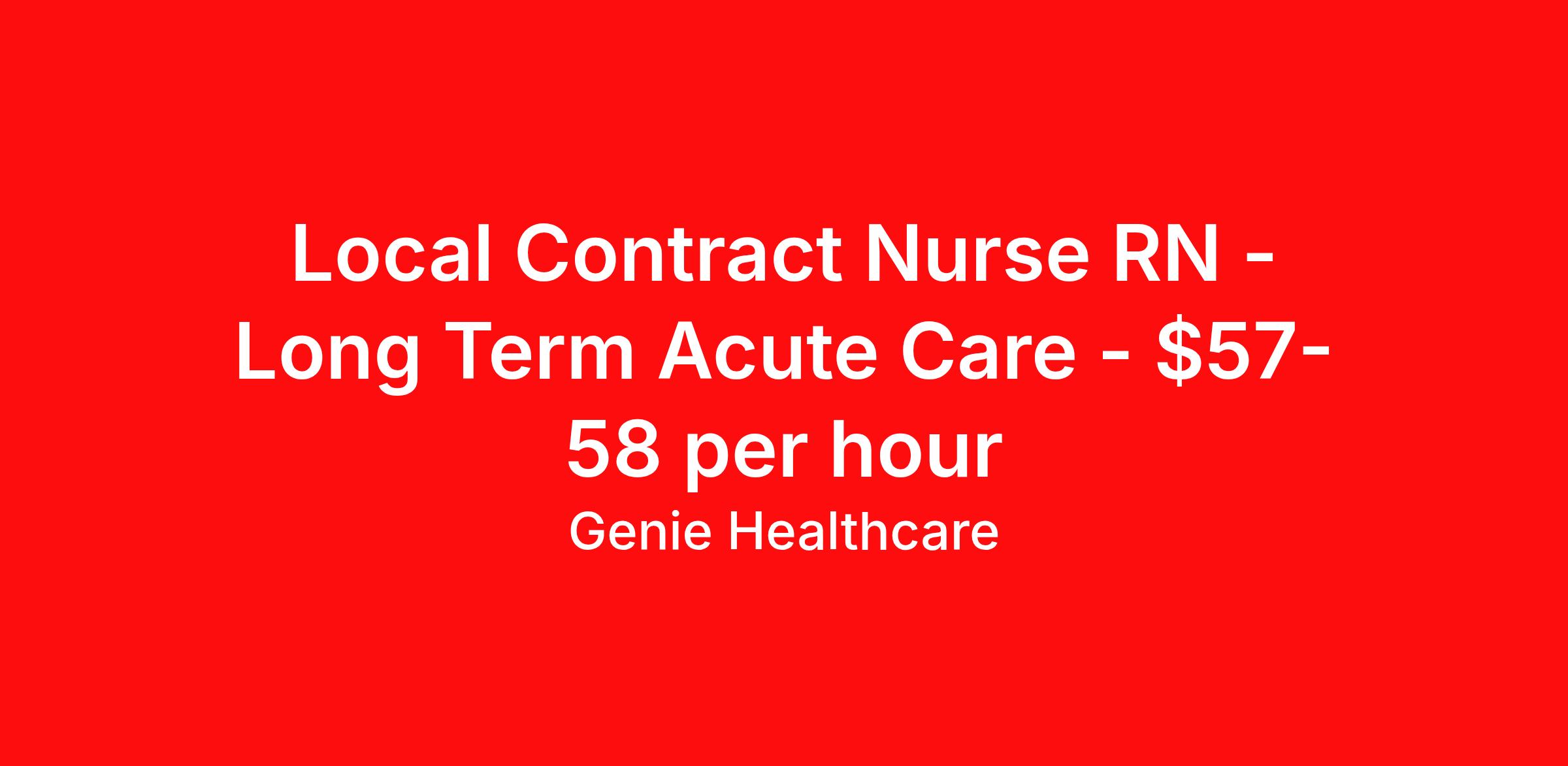 Local Contract Nurse RN - Long Term Acute Care - $57-58 per hour