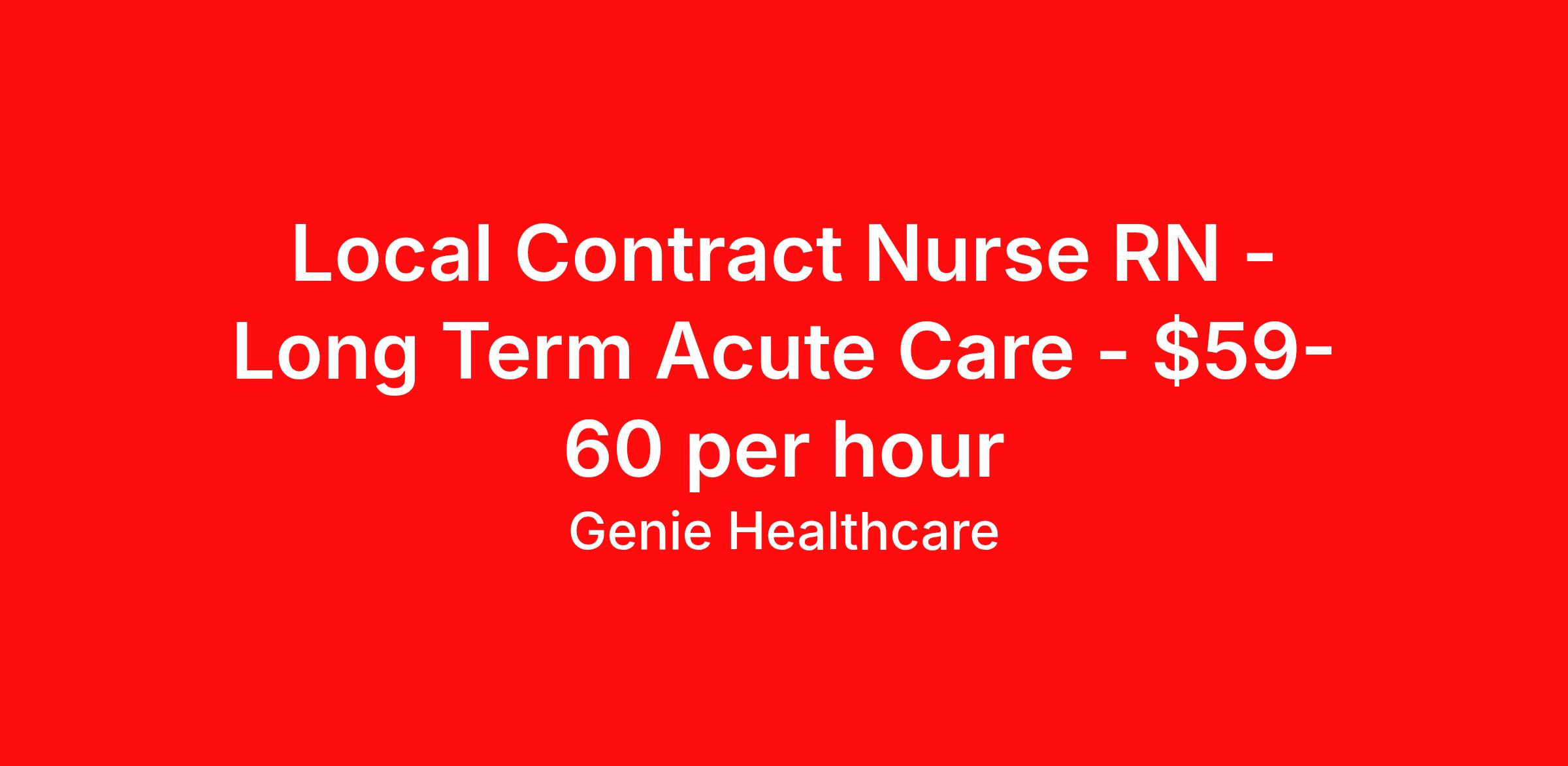 Local Contract Nurse RN - Long Term Acute Care - $59-60 per hour