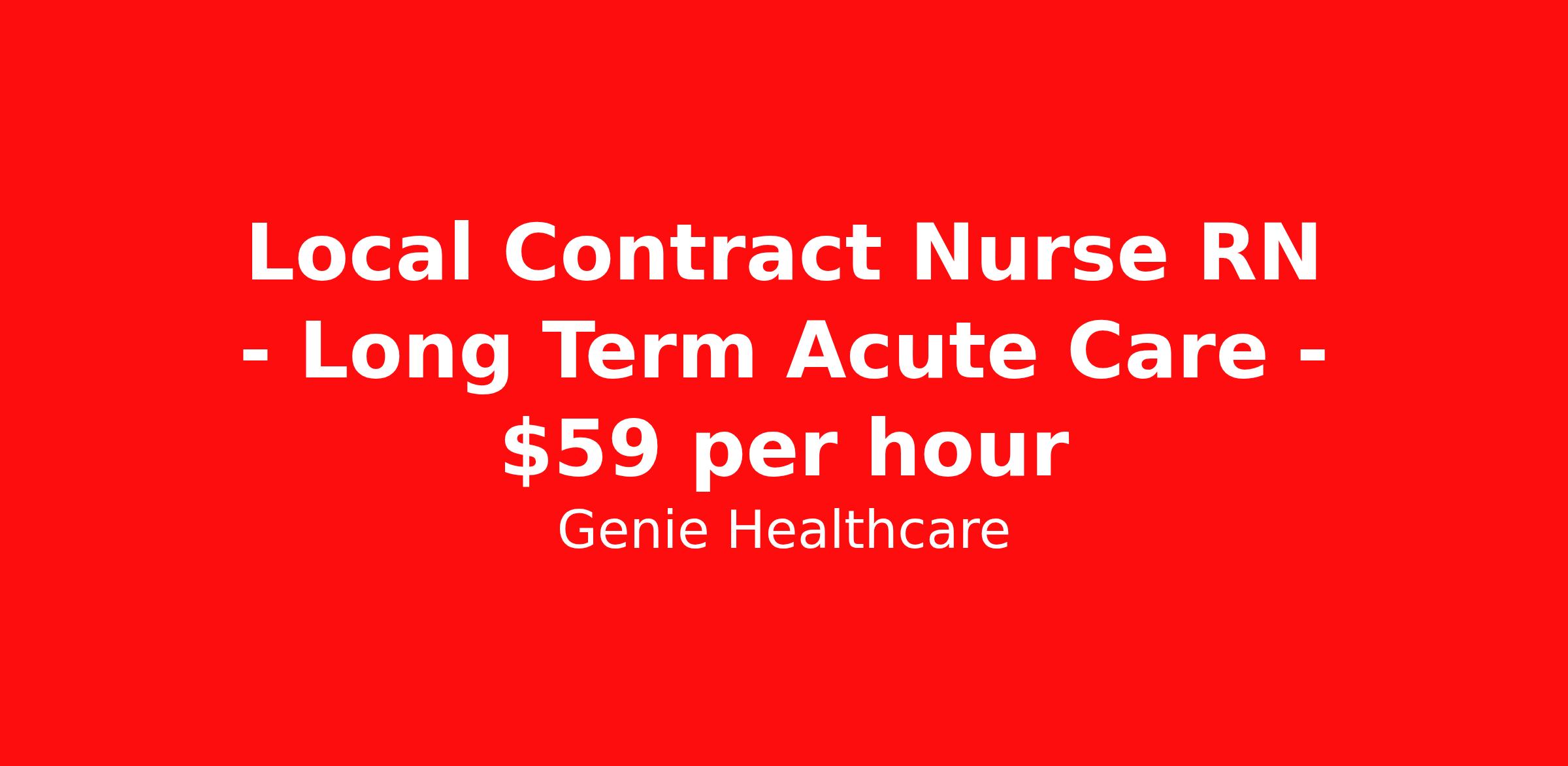 Genie Healthcare is seeking a local contract nurse RN Long Term Acute Care for a local contract nursing job in Alexandria, Virginia. Job Description & Requirements Specialty: Long Term Acute Care Discipline: RN Start Date: 04/06/2026 Duration: 13 weeks 36 hours per week Shift: 12 hours, days, nights Employment Type: Local Contract Genie Healthcare is seeking an experienced Registered Nurse (RN) for a Long-Term Acute Care Hospital (LTACH) in Alexandria, VA. Assignment Details Contract Start: 2–3 weeks from offer Shift: 3x12s Days or Nights available Contract Length: 13 Weeks- with the option to extend Pay Package Blended Hourly Rate: $59/hr (stipend taxable) Local RNs accepted at the same blended rate (Rate may change if stipend is declined or if health insurance is elected) Facility Overview: Long-Term Acute Care Hospital (LTACH) Care for medically complex and critically ill patients Participate in interdisciplinary care meetings Manage pain control and assist with urgent procedures Support patients and families throughout extended recovery Requirements Active RN license Graduate of an accredited nursing program BLS & ACLS certifications Experience with: Ventilators & Trach's IV drips PEG / EG tubes Telemetry strip interpretation Benefits with Genie Healthcare Industry-leading travel RN pay Medical, Dental & Vision insurance 401(k) with company match (50% match up to 6% of employee contribution) Since 2016, Genie Healthcare has connected nurses with rewarding travel RN and contract RN opportunities nationwide. From the moment you apply, our team supports you every step of the way. Let’s Travel Together. About Genie Healthcare Genie Healthcare is one of the fastest growing Nurse Travel Agencies in the USA. Genie serves hundreds of facilities and has over 4000 current travel RN contracts open at any given time. Genie provides travel RN’s flexibility, support, top pay scale, housing and the 1 rated, multi-state health insurance coverage. Genie Healthcare carries with it a commitment to providing a comprehensive level of service and quality care. Growing from a small team of eager recruiters to a company with satisfied clients in nearly every corner of the nation, delivering excellence in patient and customer care is the key to Genie’s success. The management team has 20 years of experience in workforce solutions and staffing in medical and non-medical fields, roles ranging from Clerical job to Cardiologist to software developer to CEO.