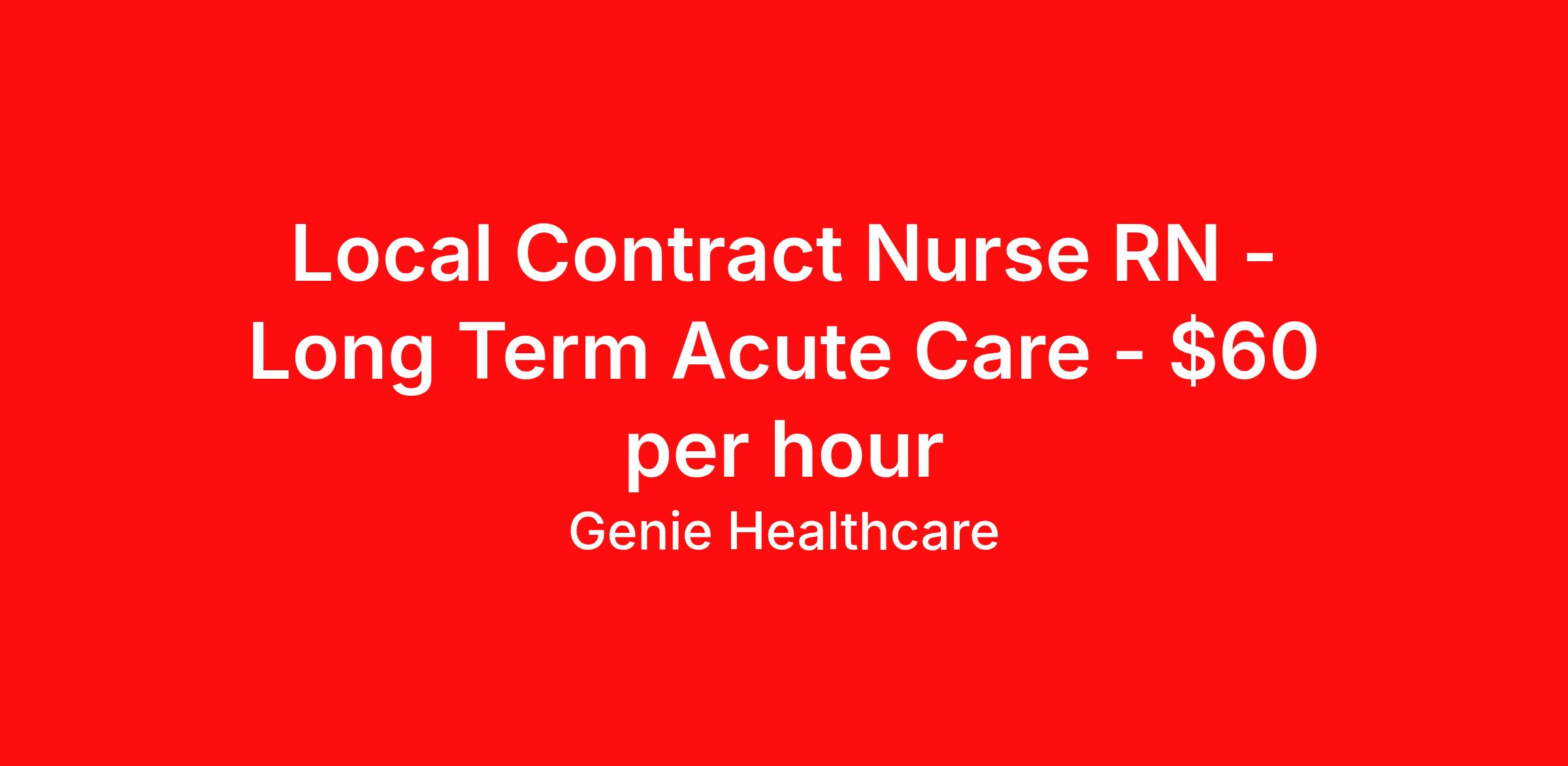 Local Contract Nurse RN - Long Term Acute Care - $60 per hour