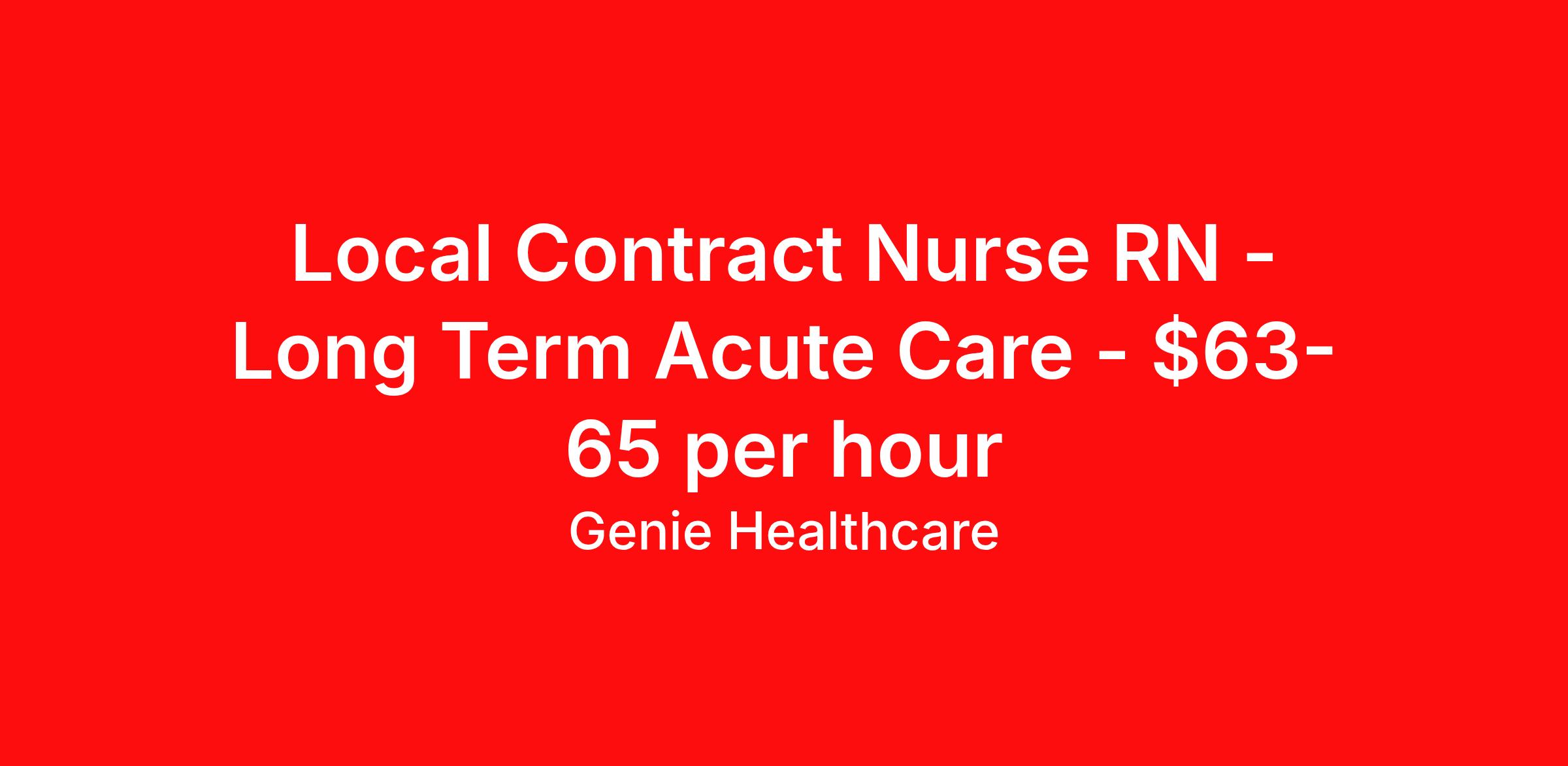 Local Contract Nurse RN - Long Term Acute Care - $63-65 per hour