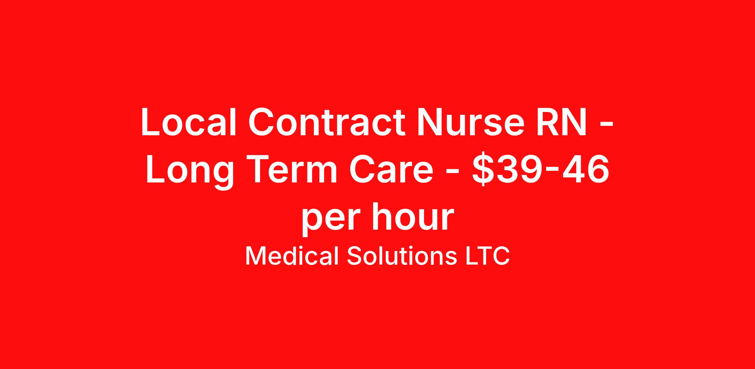 Medical Solutions LTC is seeking a local contract nurse RN Long Term Care for a local contract nursing job in Kearney, Nebraska. Job Description & Requirements Specialty: Long Term Care Discipline: RN Duration: 8 weeks 36 hours per week Shift: 12 hours, days Employment Type: Local Contract We’re seeking talented healthcare professionals whose adventure game is as strong as their clinical game. Those that want flexibility and high pay, we have the positions for you! Some of the industry-leading benefits enjoyed by Medical Solutions travel nurses and travel allied healthcare professionals include: Day One Medical, Dental, and Vision with low premiums Day One 401(k) with Company Contribution Personalized Compensation Packages Paid, Private, Fully Furnished, Pet-Friendly Housing Dedicated Recruiter and 24/7 Customer Care Line Per Diem Allowance and Paid Travel Licensure and Certification Reimbursement Free Liability Coverage Voluntary Benefits: Critical Illness, Hospital Indemnity, Accident, and Pet Insurance Equal Employment Opportunity And More! Estimated pay package based on bill rate at time job was posted. Bill rates can change frequently and without notice. Exact pay package may vary based on guaranteed hours, distance being traveled, and customizations available for travelers. LTC/SNF Facility in Nebraska is in need of an RN Traveler. Must have 2 years experience working in LTC/SNF facilities, AHA BLS, NE or compact RN license, Point Click Care. Please call Medical Solutions at for more information. Medical Solutions LTC Job ID 1075236L. Posted job title: LTC/SNF About Medical Solutions LTC At Medical Solutions, we’re people who care, helping people who care. No matter how you look at it, there’s a whole lot of care going on in our world and that’s just the way we like it. What do we do? Medical Solutions is one of the nation’s largest providers of total workforce solutions in the healthcare industry, connecting nurses and allied health clinicians with hospitals and healthcare systems across the country and around the corner. Through our family of brands, we also serve a segment of clients outside of the healthcare space. And we’re the very best at what we do. You’ll love our culture that’s filled with heart and soul. As a company and employer, we’re sincerely and unabashedly us. We lead as humans first and believe the unique qualities of each team member make us better together. We share a purpose for helping others and the drive to make a difference. And we offer endless opportunities for personal and professional growth, throughout your career. At Medical Solutions, you’ll find a great place to work and a career home. We’ve received Best Places to Work awards, landed top industry awards, and received accolades for the impact we’ve made in business and within our community. But the only way to really get to know us, is to join us. We think you’ll fit right in. Benefits Medical benefits Wellness and fitness programs Employee assistance programs Cancelation protection Discount program Mileage reimbursement Life insurance Vision benefits Referral bonus Pet insurance Continuing Education Holiday Pay License and certification reimbursement Guaranteed Hours Benefits start day 1 Company provided housing options 401k retirement plan Weekly pay Dental benefits
