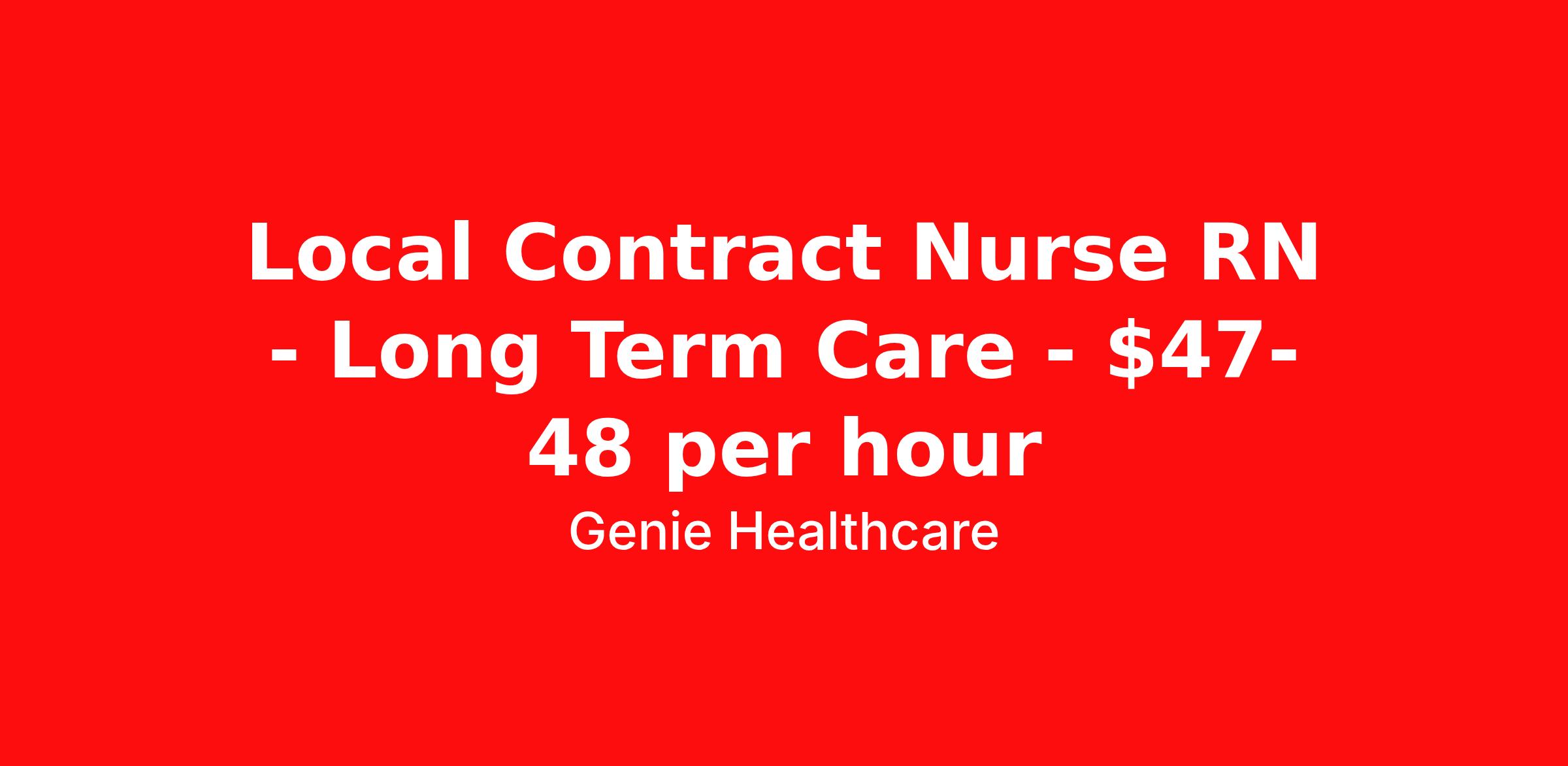 Genie Healthcare is seeking a local contract nurse RN Long Term Care for a local contract nursing job in East Moline, Illinois. Job Description & Requirements Specialty: Long Term Care Discipline: RN Start Date: 03/30/2026 Duration: 12 weeks 36 hours per week Shift: 12 hours, days Employment Type: Local Contract Contract Details: Local contract min of 1 year of RN experience BLS reliable transportation About Genie Healthcare Genie Healthcare is one of the fastest growing Nurse Travel Agencies in the USA. Genie serves hundreds of facilities and has over 4000 current travel RN contracts open at any given time. Genie provides travel RN’s flexibility, support, top pay scale, housing and the 1 rated, multi-state health insurance coverage. Genie Healthcare carries with it a commitment to providing a comprehensive level of service and quality care. Growing from a small team of eager recruiters to a company with satisfied clients in nearly every corner of the nation, delivering excellence in patient and customer care is the key to Genie’s success. The management team has 20 years of experience in workforce solutions and staffing in medical and non-medical fields, roles ranging from Clerical job to Cardiologist to software developer to CEO.