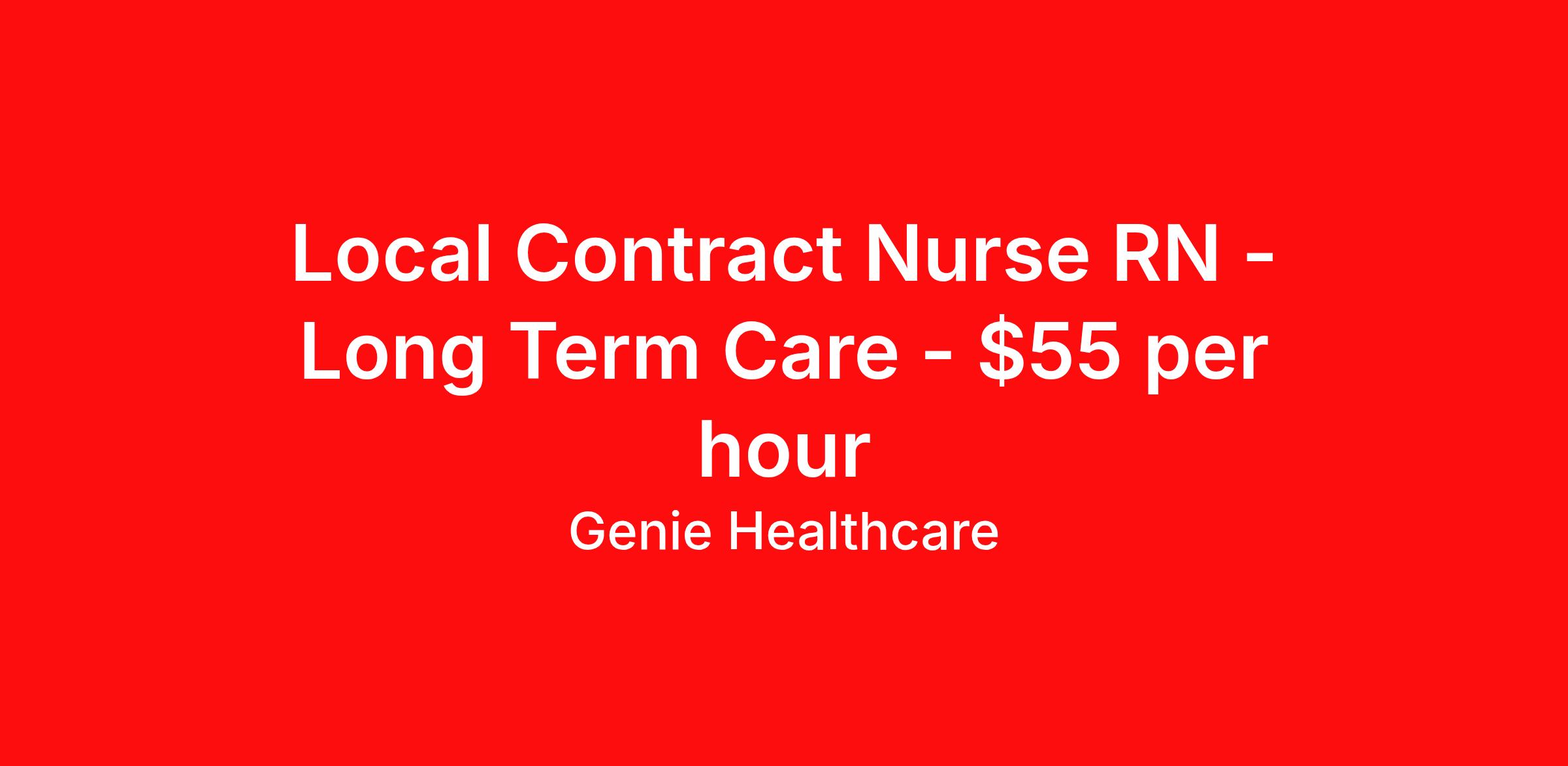 Genie Healthcare is seeking a local contract nurse RN Long Term Care for a local contract nursing job in Cincinnati, Ohio. Job Description & Requirements Specialty: Long Term Care Discipline: RN Start Date: 04/06/2026 Duration: 13 weeks 36 hours per week Shift: 12 hours, days, nights Employment Type: Local Contract Genie Healthcare is seeking a Registered Nurse for a 13 week contract in Cincinnati, OH. This facility is seeking an RN who can provide compassionate care and enriching programs for people with developmental disabilities. Shift: 3x12s Days OR Nights available Blended Hourly Rate: $55 (stipend taxable) (Rate may change if stipend is declined or if health insurance is elected) Requirements: BLS Nursing License 2 years of vent and trach experience covid and flu vaccine before starting This is a child developmental disability facility, pediatric experience is preferred but not required Since 2016, Genie Healthcare has connected nurses with rewarding travel RN and contract RN opportunities nationwide. From the moment you apply, our team supports you every step of the way. Let’s Travel Together. About Genie Healthcare Genie Healthcare is one of the fastest growing Nurse Travel Agencies in the USA. Genie serves hundreds of facilities and has over 4000 current travel RN contracts open at any given time. Genie provides travel RN’s flexibility, support, top pay scale, housing and the 1 rated, multi-state health insurance coverage. Genie Healthcare carries with it a commitment to providing a comprehensive level of service and quality care. Growing from a small team of eager recruiters to a company with satisfied clients in nearly every corner of the nation, delivering excellence in patient and customer care is the key to Genie’s success. The management team has 20 years of experience in workforce solutions and staffing in medical and non-medical fields, roles ranging from Clerical job to Cardiologist to software developer to CEO.