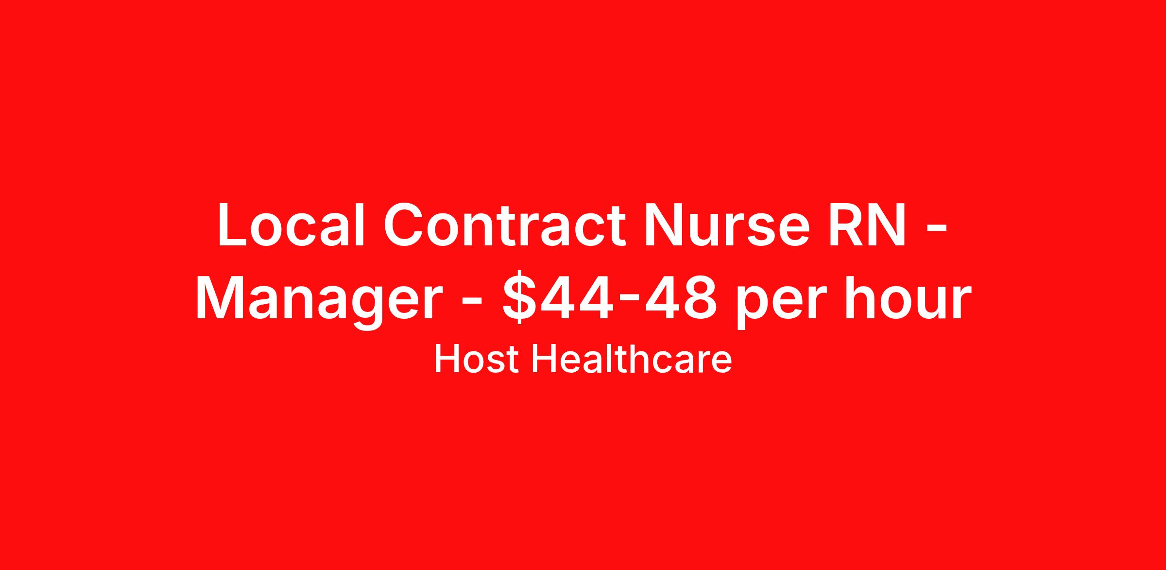 Host Healthcare is seeking a local contract nurse RN Manager for a local contract nursing job in Memphis, Tennessee. Job Description & Requirements Specialty: Manager Discipline: RN Duration: 13 weeks 36 hours per week Shift: 12 hours, days Employment Type: Local Contract Host Healthcare Job ID La1fVX000002wMYUYA2. Pay package is based on 12 hour shifts and 36 hours per week (subject to confirmation) with tax-free stipend amount to be determined. Posted job title: RN - Nurse Manager About Host Healthcare At Host Healthcare, we provide a truly comfortable experience as you explore your travel nursing, therapy, or allied career. We make your travel healthcare journey easy by taking care of all the details, so you don’t have to. We are on a mission to help others live better and we do this by helping the healers of the world be as comfortable as possible. With access to tens of thousands of travel nursing, therapy, and allied jobs in all 50 states, our responsive and friendly recruiters find your dream position based on what’s important to you. During your assignment, get access to premium benefits, including Day 1 medical that continues up to 30 days between assignments, 401K matching, travel reimbursements, dedicated housing support, and more. We also offer 24/7 support from our team and access to our on-staff clinicians so you can feel comfortable and confident throughout your entire assignment. Travel comfortably with Host Healthcare. Benefits Referral bonus School loan reimbursement Vision benefits Wellness and fitness programs Company provided housing options License and certification reimbursement Life insurance Medical benefits Mileage reimbursement Pet insurance Discount program Employee assistance programs Guaranteed Hours Health savings account Holiday Pay 401k retirement plan Continuing Education Dental benefits