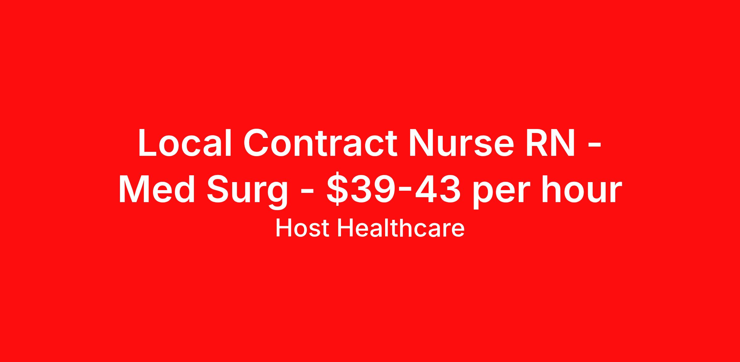 Host Healthcare is seeking a local contract nurse RN Med Surg for a local contract nursing job in Harlingen, Texas. Job Description & Requirements Specialty: Med Surg Discipline: RN Start Date: 04/08/2026 Duration: 13 weeks 36 hours per week Shift: 12 hours, days Employment Type: Local Contract Host Healthcare Job ID La1fVX000002xiblYAA. Pay package is based on 12 hour shifts and 36 hours per week (subject to confirmation) with tax-free stipend amount to be determined. Posted job title: RN - Med Surg About Host Healthcare At Host Healthcare, we provide a truly comfortable experience as you explore your travel nursing, therapy, or allied career. We make your travel healthcare journey easy by taking care of all the details, so you don’t have to. We are on a mission to help others live better and we do this by helping the healers of the world be as comfortable as possible. With access to tens of thousands of travel nursing, therapy, and allied jobs in all 50 states, our responsive and friendly recruiters find your dream position based on what’s important to you. During your assignment, get access to premium benefits, including Day 1 medical that continues up to 30 days between assignments, 401K matching, travel reimbursements, dedicated housing support, and more. We also offer 24/7 support from our team and access to our on-staff clinicians so you can feel comfortable and confident throughout your entire assignment. Travel comfortably with Host Healthcare. Benefits Referral bonus School loan reimbursement Vision benefits Wellness and fitness programs Company provided housing options License and certification reimbursement Life insurance Medical benefits Mileage reimbursement Pet insurance Discount program Employee assistance programs Guaranteed Hours Health savings account Holiday Pay 401k retirement plan Continuing Education Dental benefits
