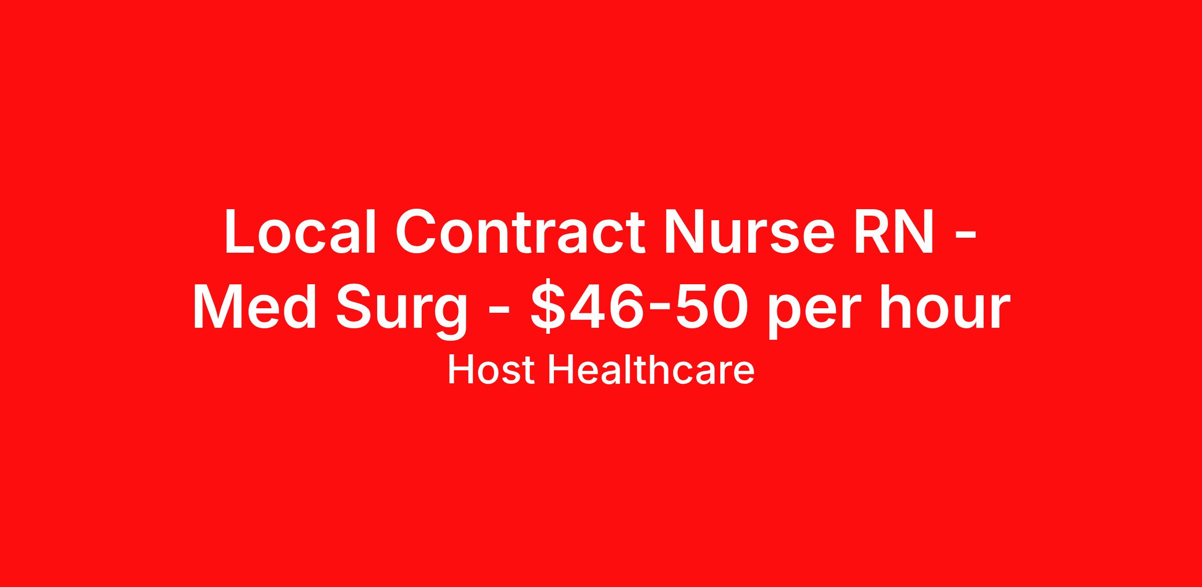 Host Healthcare is seeking a local contract nurse RN Med Surg for a local contract nursing job in Seymour, Indiana. Job Description & Requirements Specialty: Med Surg Discipline: RN Start Date: 04/14/2026 Duration: 13 weeks 5 hours per week Shift: 12 hours, days Employment Type: Local Contract Host Healthcare Job ID La1fVX000002zQqrYAE. Pay package is based on 12 hour shifts and 5 hours per week (subject to confirmation) with tax-free stipend amount to be determined. Posted job title: RN - Medical-Surgical About Host Healthcare At Host Healthcare, we provide a truly comfortable experience as you explore your travel nursing, therapy, or allied career. We make your travel healthcare journey easy by taking care of all the details, so you don’t have to. We are on a mission to help others live better and we do this by helping the healers of the world be as comfortable as possible. With access to tens of thousands of travel nursing, therapy, and allied jobs in all 50 states, our responsive and friendly recruiters find your dream position based on what’s important to you. During your assignment, get access to premium benefits, including Day 1 medical that continues up to 30 days between assignments, 401K matching, travel reimbursements, dedicated housing support, and more. We also offer 24/7 support from our team and access to our on-staff clinicians so you can feel comfortable and confident throughout your entire assignment. Travel comfortably with Host Healthcare. Benefits Referral bonus School loan reimbursement Vision benefits Wellness and fitness programs Company provided housing options License and certification reimbursement Life insurance Medical benefits Mileage reimbursement Pet insurance Discount program Employee assistance programs Guaranteed Hours Health savings account Holiday Pay 401k retirement plan Continuing Education Dental benefits