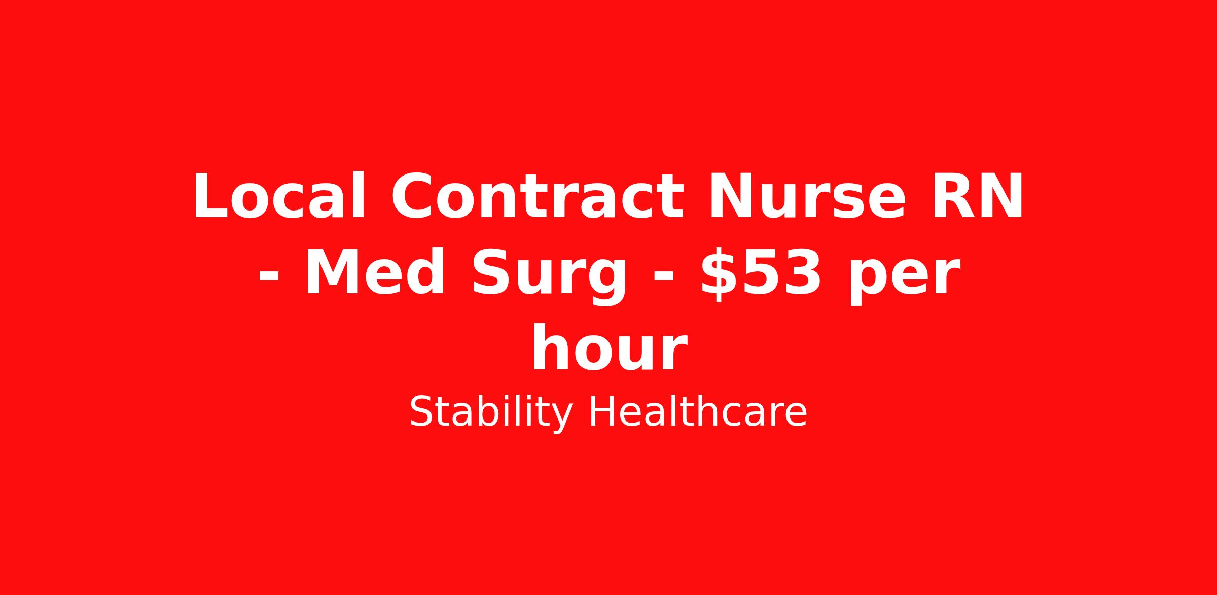 Stability Healthcare is seeking a local contract nurse RN Med Surg for a local contract nursing job in Geneva, New York. Job Description & Requirements Specialty: Med Surg Discipline: RN Start Date: 04/13/2026 Duration: 14 weeks 36 hours per week Shift: 12 hours Employment Type: Local Contract Stability Healthcare is looking for a Med-Surg RN contract position in Geneva, NY. The majority of hospitalized patients are admitted to M/S either directly or after surgery. M/S is also where patients who have been in critical care (ICU) are transferred when they no longer need critical care but still require nursing care. *$600 travel bonus *Day 1 health insurance with United Healthcare *PTO plan start accruing on day 1, use during contract or cash out at the end! *Guaranteed stipend if facility calls you off *Extra hour bonus earn an additional hourly bonus for working over your weekly contracted hours Stability Job ID L-827830. Pay package is based on 12 hour shifts and 36 hours per week (subject to confirmation) with tax-free stipend amount to be determined. Posted job title: Med-Surg About Stability Healthcare Stability Healthcare was founded in 2009, with the mission of becoming the best Travel Nursing Agency in California. We have been rated one of the top travel nursing agencies and offer our nurses the highest paying travel nursing jobs available. We have access to the best travel assignments from 1000’s of facilities. You can start the year off in sunny California, spend the Spring in the Colorado Rockies, enjoy the Summer in the Mid-West, experience the change of seasons in Boston and New York, and hit the beaches of Florida in the winter. Our Nurses work in the best hospitals and health systems in the country. Benefits Guaranteed Hours Benefits start day 1