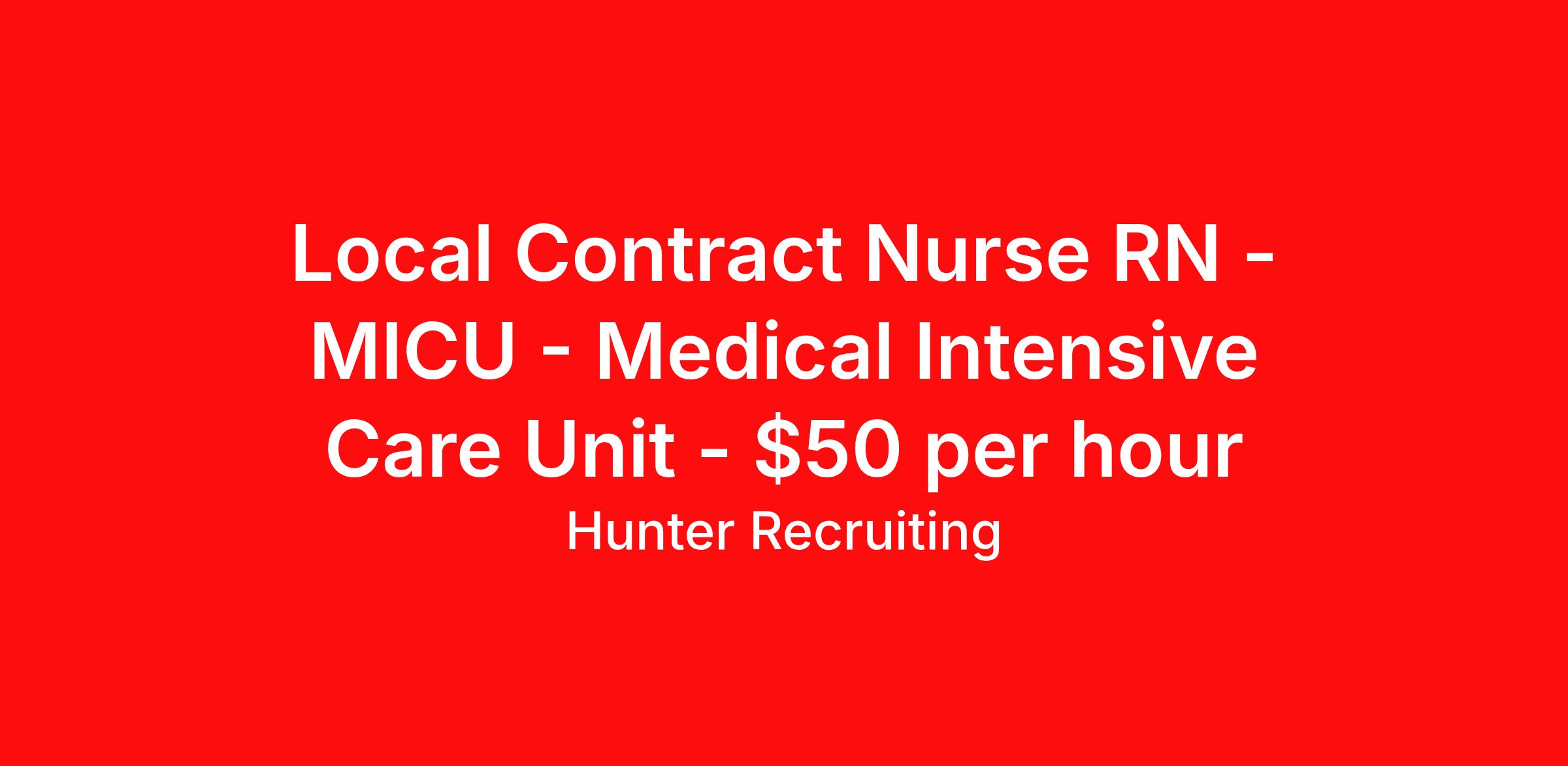Local Contract Nurse RN - MICU - Medical Intensive Care Unit - $50 per hour