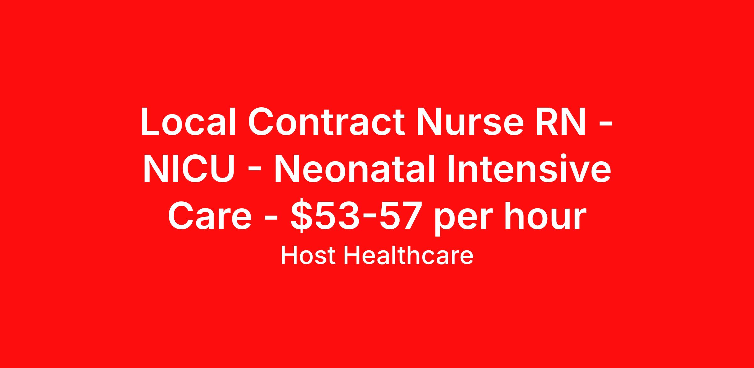 Local Contract Nurse RN - NICU - Neonatal Intensive Care - $53-57 per hour