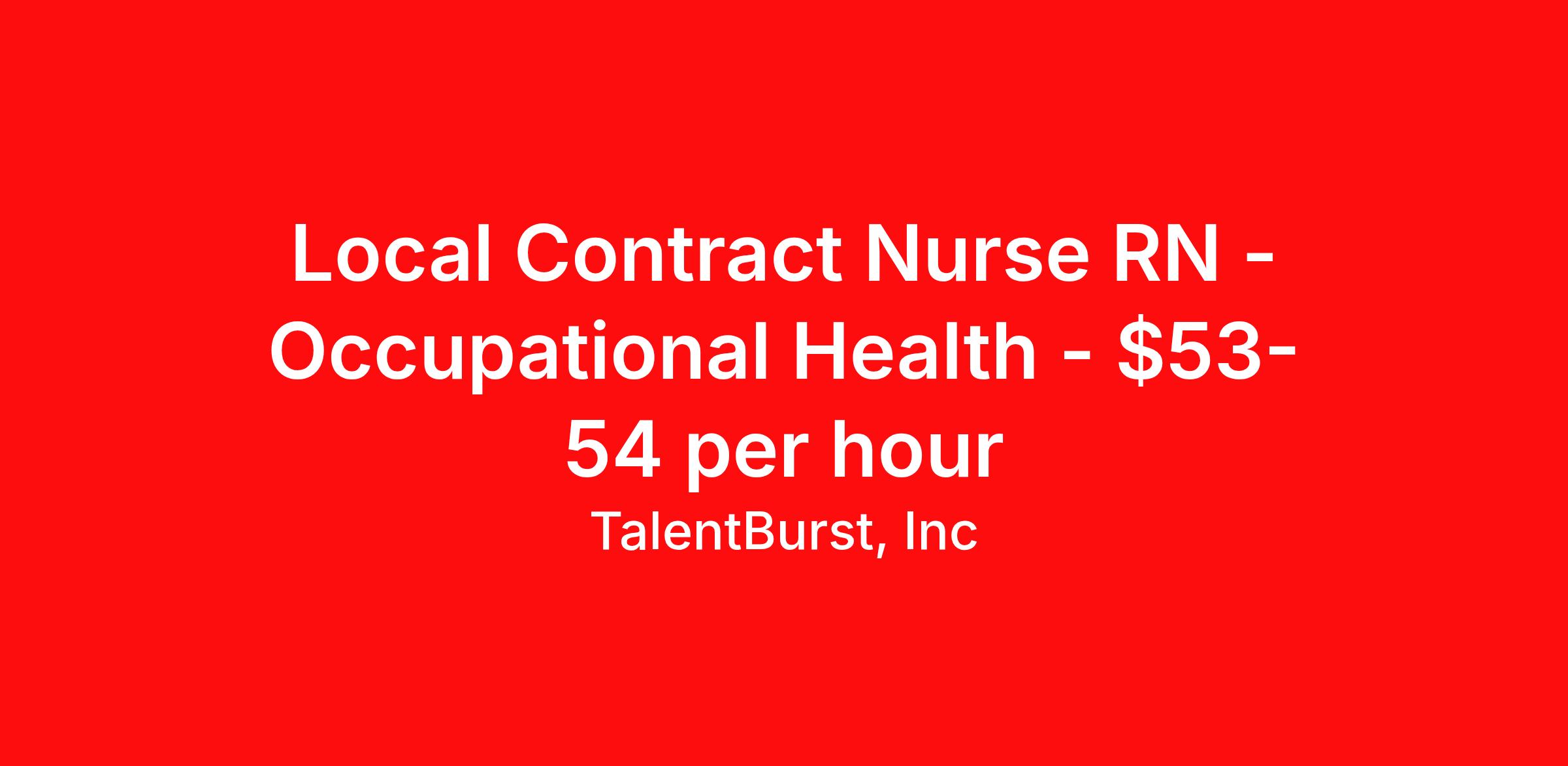 Local Contract Nurse RN - Occupational Health - $53-54 per hour