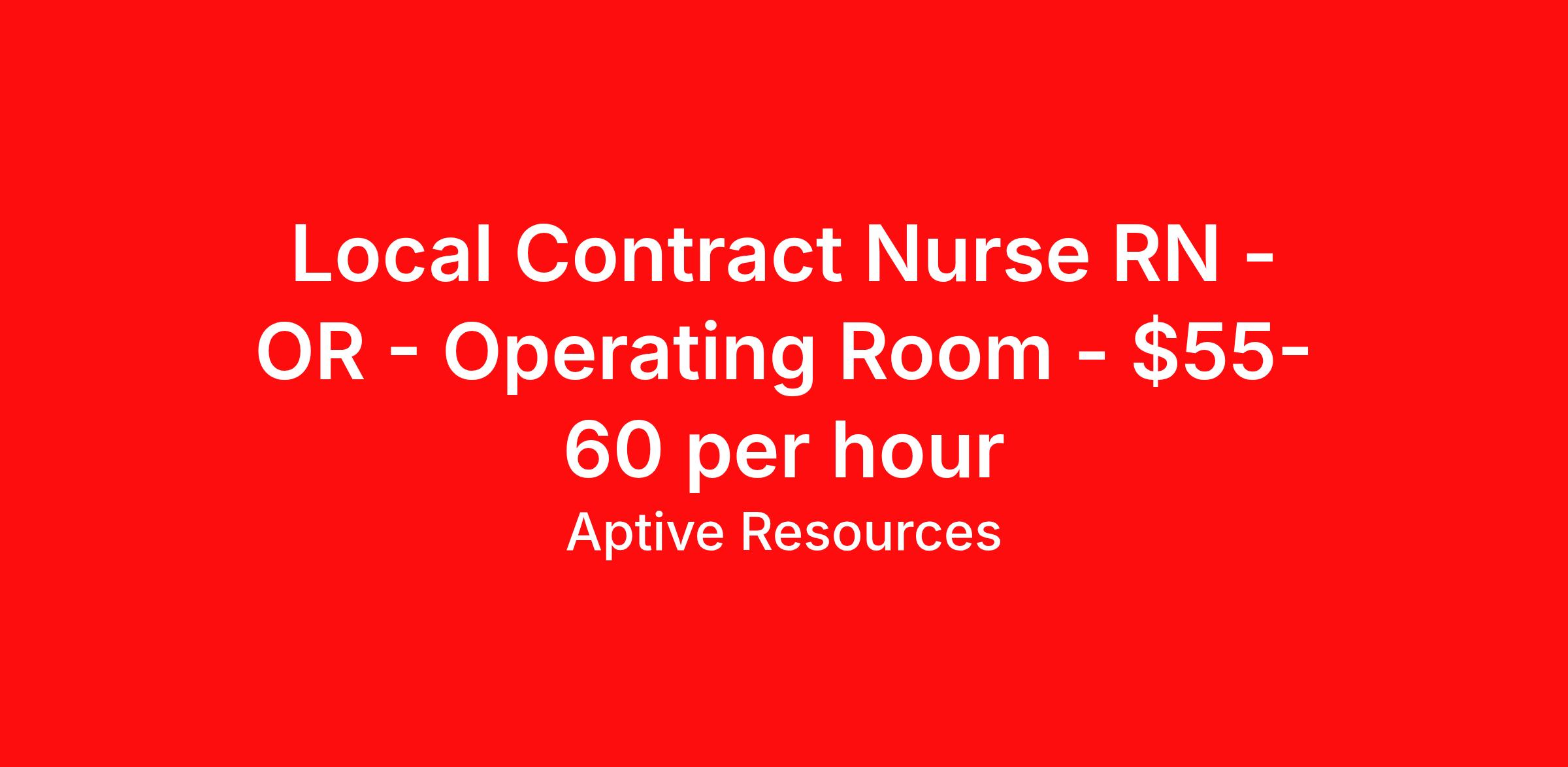 Local Contract Nurse RN - OR - Operating Room - $55-60 per hour