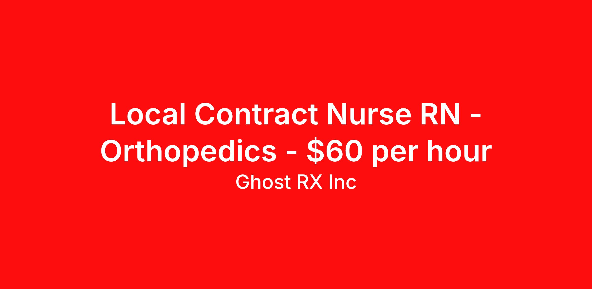 Local Contract Nurse RN - Orthopedics - $60 per hour