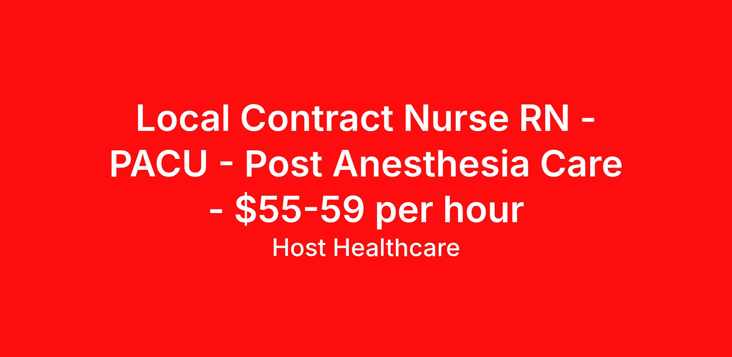 Local Contract Nurse RN - PACU - Post Anesthesia Care - $55-59 per hour