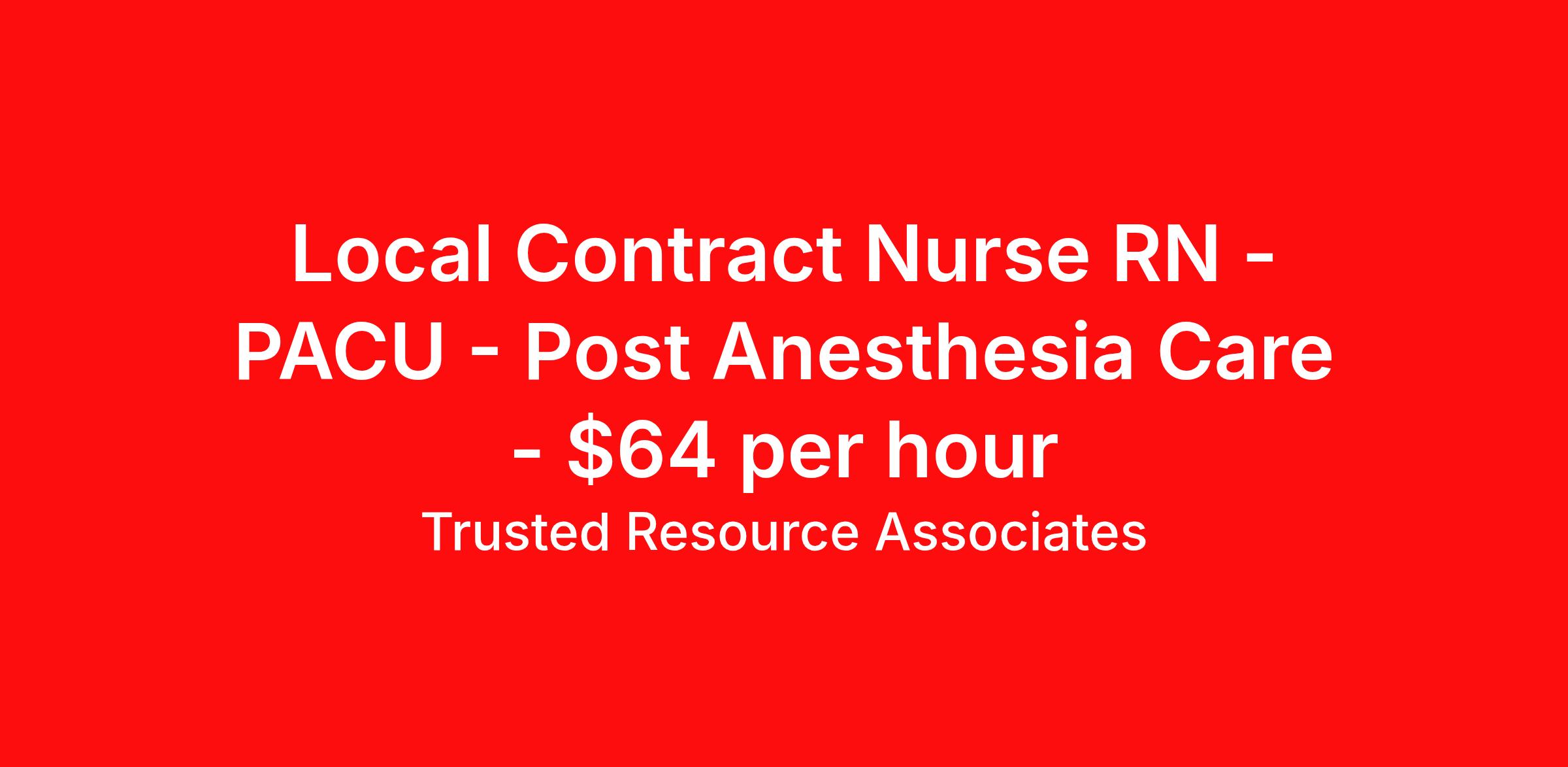 Local Contract Nurse RN - PACU - Post Anesthesia Care - $64 per hour