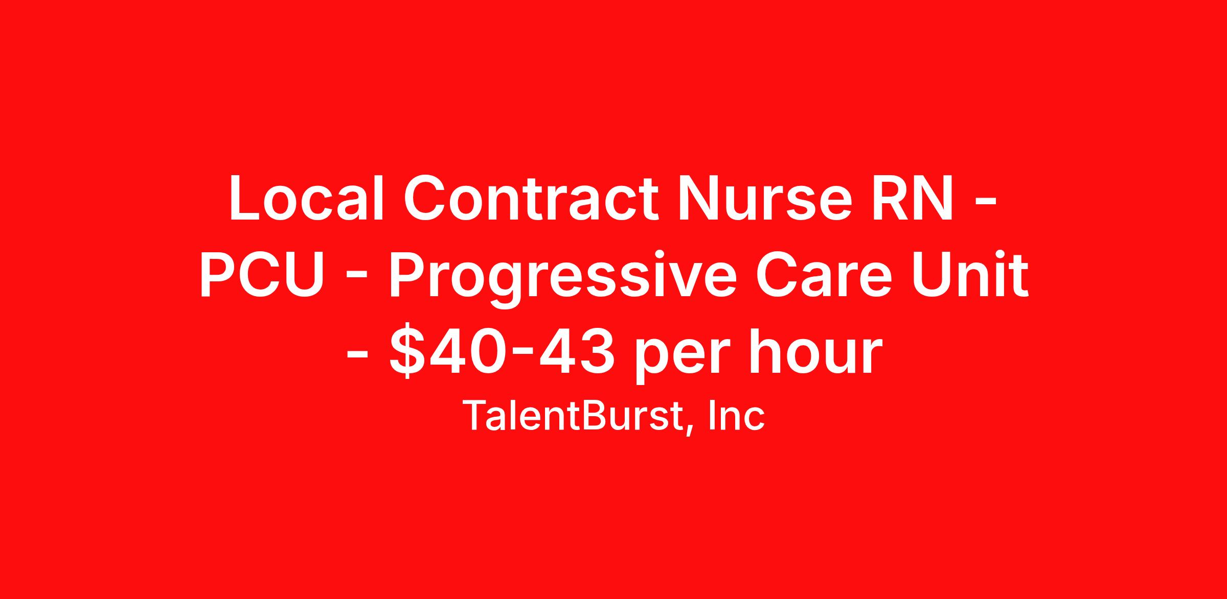 Local Contract Nurse RN - PCU - Progressive Care Unit - $40-43 per hour