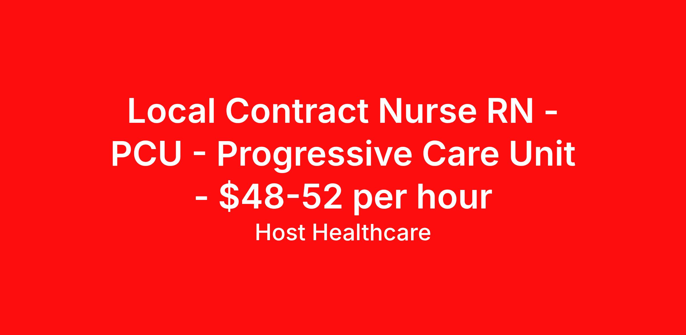 Local Contract Nurse RN - PCU - Progressive Care Unit - $48-52 per hour