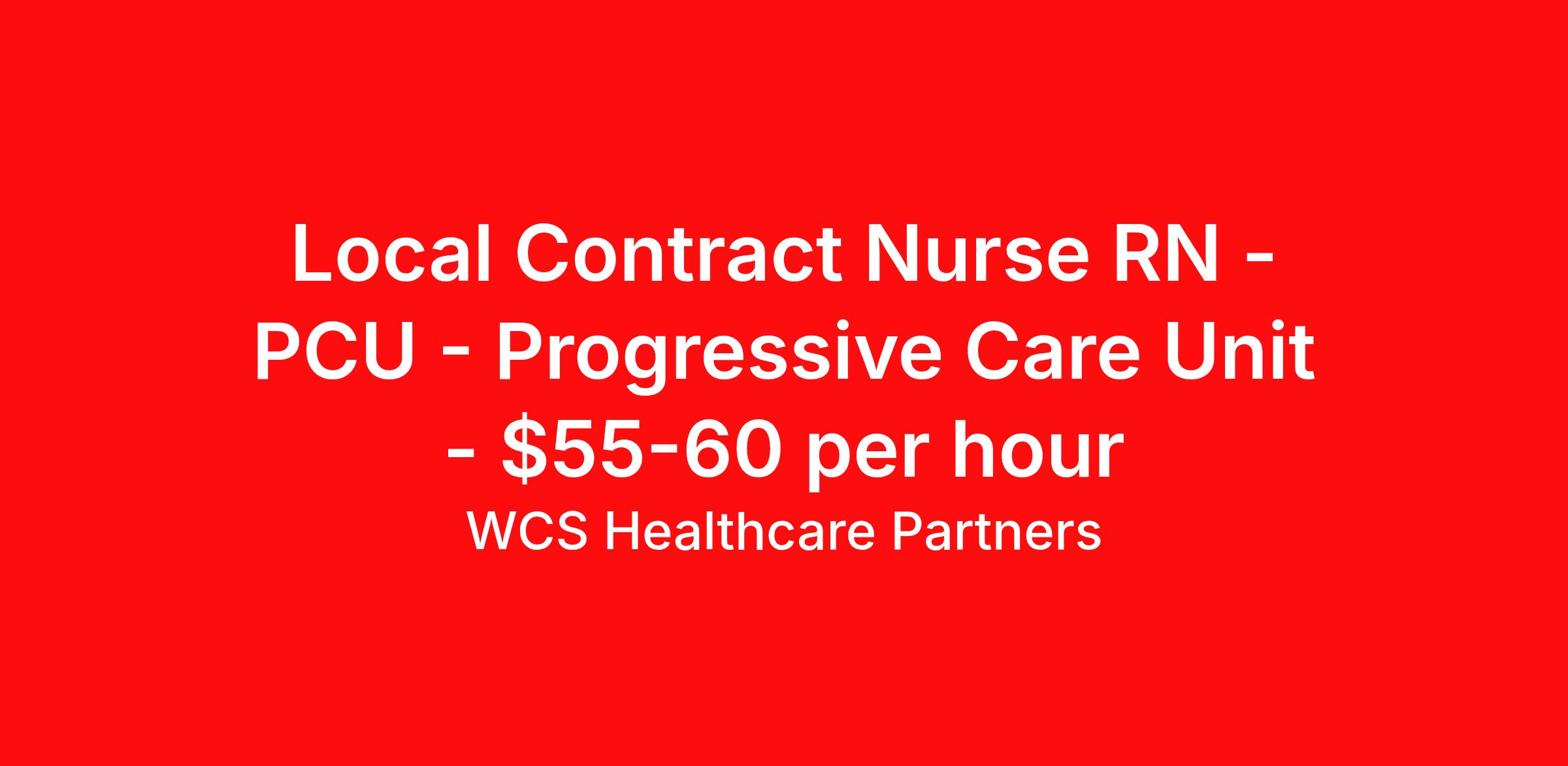WCS Healthcare Partners is seeking a local contract nurse RN PCU - Progressive Care Unit for a local contract nursing job in Honesdale, Pennsylvania. Job Description & Requirements Specialty: PCU - Progressive Care Unit Discipline: RN Duration: 13 weeks 36 hours per week Shift: 12 hours, days Employment Type: Local Contract WCS Healthcare is currently seeking a Medical Surgical Nurse a for a 13-week contract assignment at a Prestigious Hospital in Honesdale, PA. Job Function: Day Shift. 3x12. Prepares and administers (orally, subcutaneously, through an IV) and records prescribed medications. Reports adverse reactions to medications or treatments in accordance with the policy regarding the administration of medications by a licensed registered nurse. Educates patients on surgical procedures. Records patients’ medical information and vital signs. Monitors and adjusts specialized equipment used on patients, and interprets and records electronic displays. Initiates corrective action whenever the patient. Job Requirements: Graduate from an accredited School of Nursing or Bachelor's Degree in Nursing (BSN). Current State RN license (or willingness to obtain). 1-2 years of acute care experience in this speciality. BLS certification from the American Heart Association. Disclosure: The hourly rates and/or salaries listed may or may not reflect total compensation packages including bonus and fringe benefits, etc., nor are the advertisement(s) posted a guarantee of a certain compensation package for a position or bona fide offer of employment. All qualified applicants will receive consideration for employment without regard to race, color, religion, sex, sexual orientation, gender identity, national origin, or protected veteran status and will not be discriminated against on the basis of disability. ITAC1 LI-DNP 43263 White Cap Search Partners Job ID 43263. Posted job title: RN - Progressive Care About WCS Healthcare Partners With WCS Healthcare Partners, every Job Seeker grows stronger, moving one step forward with each job placement. We take the time to get to know the needs and qualifications of each Healthcare professional to match you with the right clinical setting, patient population, merging your compensation and career goals with your desired work environment. Our recruiters are experts at navigating the dynamic nature of healthcare employers to get your resume in front of the right decision makers. NURSING ● Registered Nurses (RN) ● Licensed Practical Nurses (LPN) ● Travel Nursing ● Quality Assurance/Review, Performance Improvement, HEDIS ● Nursing Leadership ● Case Management ALLIED HEALTH ● Technologists: Medical, Laboratory, Cardiac, RadTech, X-Ray ● Therapy: Physical, Occupational and Speech Therapy ● Social Work: LCSW/LMSW, Case Management, Care Coordination ● Med Support: Medical Assistants, Phlebotomy, Surgical/Sterile Techs ● Pharmacists and Pharmacy Techs ● Dental Hygienist, Dental Assistants OPERATIONS & FINANCE ● Practice Management ● Clinical Operations ● Administrative Support ● Reception, Clerical, Call Center ● Claims Appeals/Denials/Reimbursement ● Insurance Pre-Authorizations ● Medical Billing/Coding Benefits 401k retirement plan Weekly pay