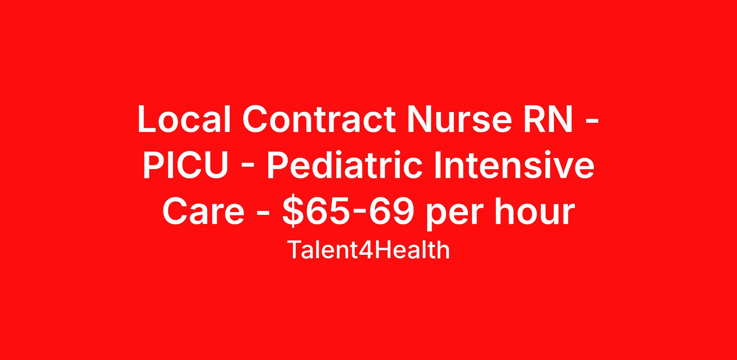 Local Contract Nurse RN - PICU - Pediatric Intensive Care - $65-69 per hour