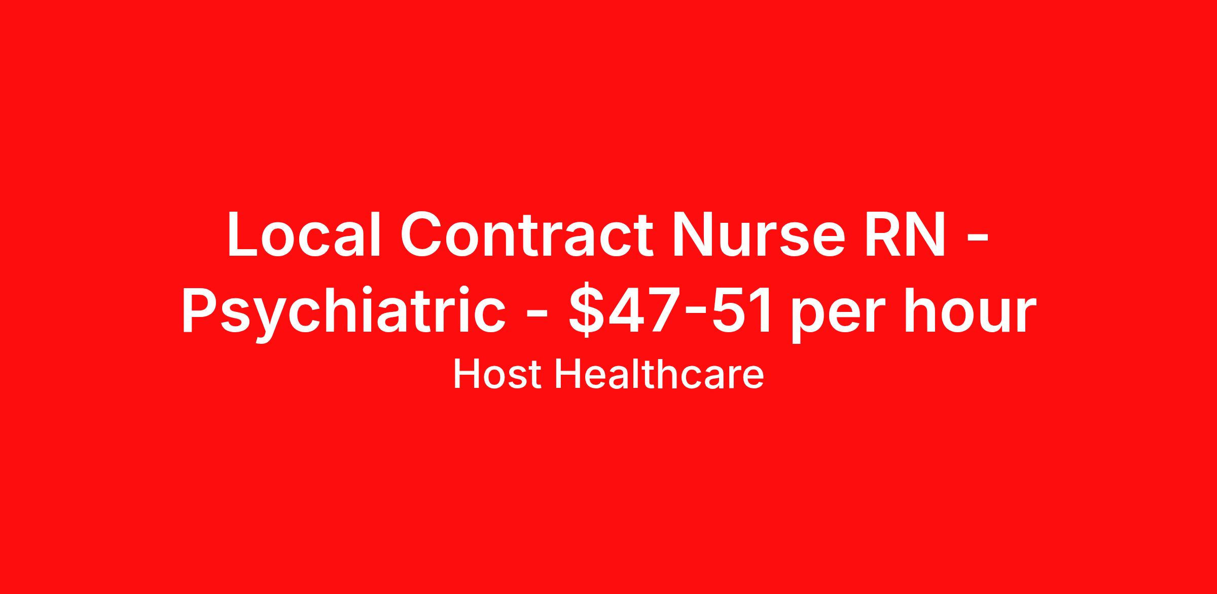 Host Healthcare is seeking a local contract nurse RN Psychiatric for a local contract nursing job in Ithaca, New York. Job Description & Requirements Specialty: Psychiatric Discipline: RN Start Date: 03/30/2026 Duration: 13 weeks 40 hours per week Shift: 8 hours, days, nights Employment Type: Local Contract Host Healthcare Job ID La1fVX000002vUGLYA2. Pay package is based on 8 hour shifts and 40 hours per week (subject to confirmation) with tax-free stipend amount to be determined. Posted job title: RN - Medical-Surgical Psychiatry About Host Healthcare At Host Healthcare, we provide a truly comfortable experience as you explore your travel nursing, therapy, or allied career. We make your travel healthcare journey easy by taking care of all the details, so you don’t have to. We are on a mission to help others live better and we do this by helping the healers of the world be as comfortable as possible. With access to tens of thousands of travel nursing, therapy, and allied jobs in all 50 states, our responsive and friendly recruiters find your dream position based on what’s important to you. During your assignment, get access to premium benefits, including Day 1 medical that continues up to 30 days between assignments, 401K matching, travel reimbursements, dedicated housing support, and more. We also offer 24/7 support from our team and access to our on-staff clinicians so you can feel comfortable and confident throughout your entire assignment. Travel comfortably with Host Healthcare. Benefits Referral bonus School loan reimbursement Vision benefits Wellness and fitness programs Company provided housing options License and certification reimbursement Life insurance Medical benefits Mileage reimbursement Pet insurance Discount program Employee assistance programs Guaranteed Hours Health savings account Holiday Pay 401k retirement plan Continuing Education Dental benefits