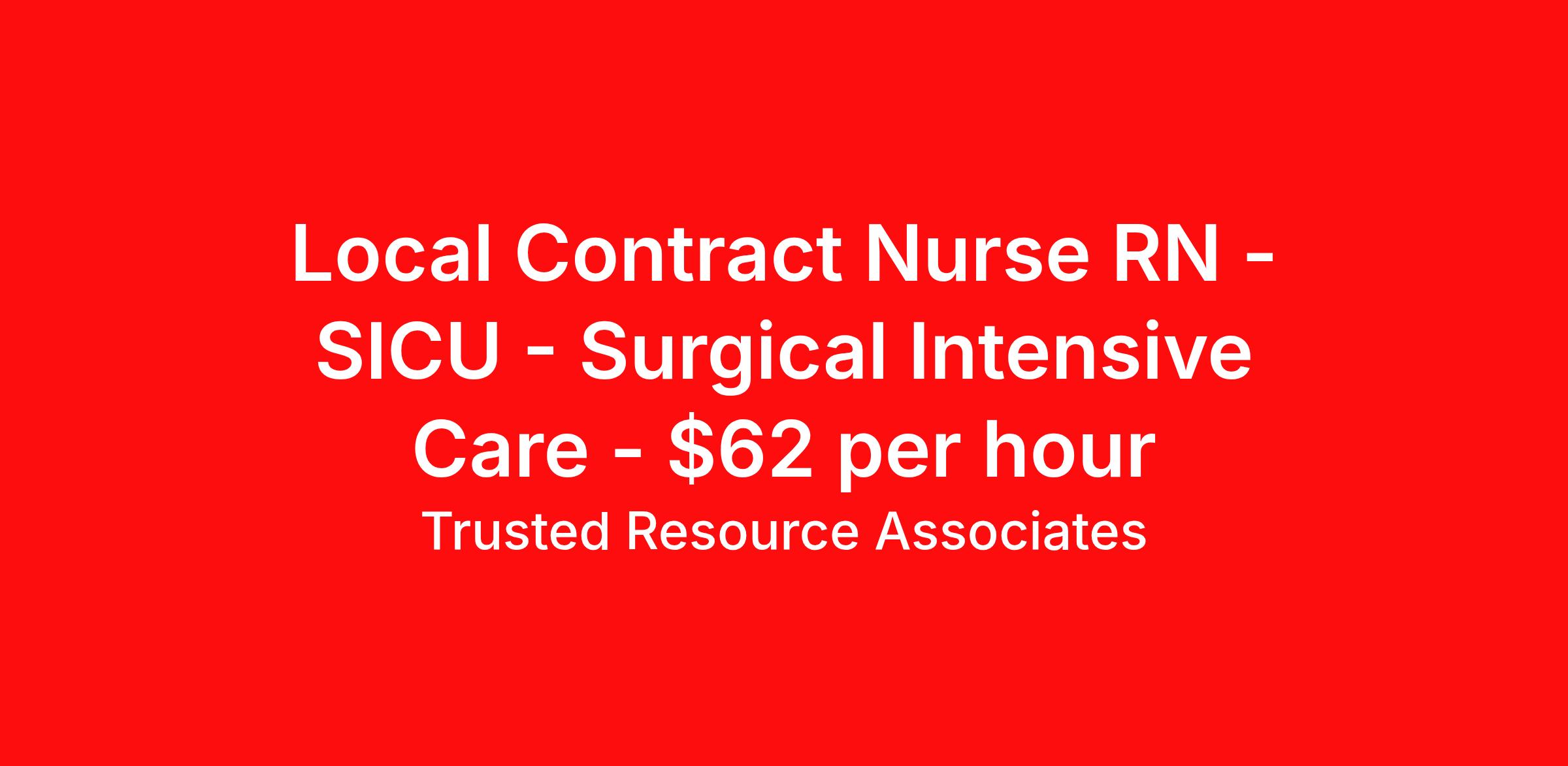 Local Contract Nurse RN - SICU - Surgical Intensive Care - $62 per hour