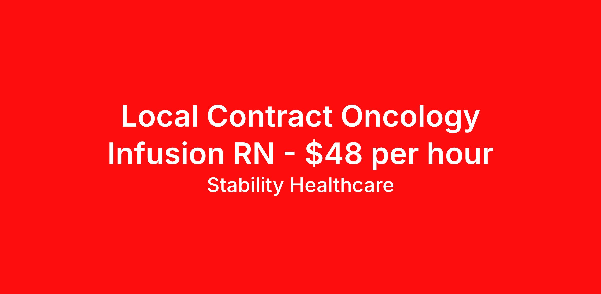 Stability Healthcare is seeking a local contract nurse RN Oncology for a local contract nursing job in Lancaster, South Carolina. Job Description & Requirements Specialty: Oncology Discipline: RN Duration: 13 weeks 40 hours per week Shift: 8 hours, days Employment Type: Local Contract Stability Healthcare is looking for a Oncology RN contract position in Lancaster, SC. Oncology Nurses care for cancer patients of all ages. Oncology is one of the most challenging fields in nursing requiring high level of compassion to support and care for patients and their loved ones. Helping individuals through challenges on their cancer journey also makes Oncology one of the most rewarding professions. *$600 travel bonus *Day 1 health insurance with United Healthcare *PTO plan start accruing on day 1, use during contract or cash out at the end! *Guaranteed stipend if facility calls you off *Extra hour bonus earn an additional hourly bonus for working over your weekly contracted hours Stability Job ID L-821530. Pay package is based on 8 hour shifts and 40 hours per week (subject to confirmation) with tax-free stipend amount to be determined. Posted job title: Oncology About Stability Healthcare Stability Healthcare was founded in 2009, with the mission of becoming the best Travel Nursing Agency in California. We have been rated one of the top travel nursing agencies and offer our nurses the highest paying travel nursing jobs available. We have access to the best travel assignments from 1000’s of facilities. You can start the year off in sunny California, spend the Spring in the Colorado Rockies, enjoy the Summer in the Mid-West, experience the change of seasons in Boston and New York, and hit the beaches of Florida in the winter. Our Nurses work in the best hospitals and health systems in the country. Benefits Guaranteed Hours Benefits start day 1